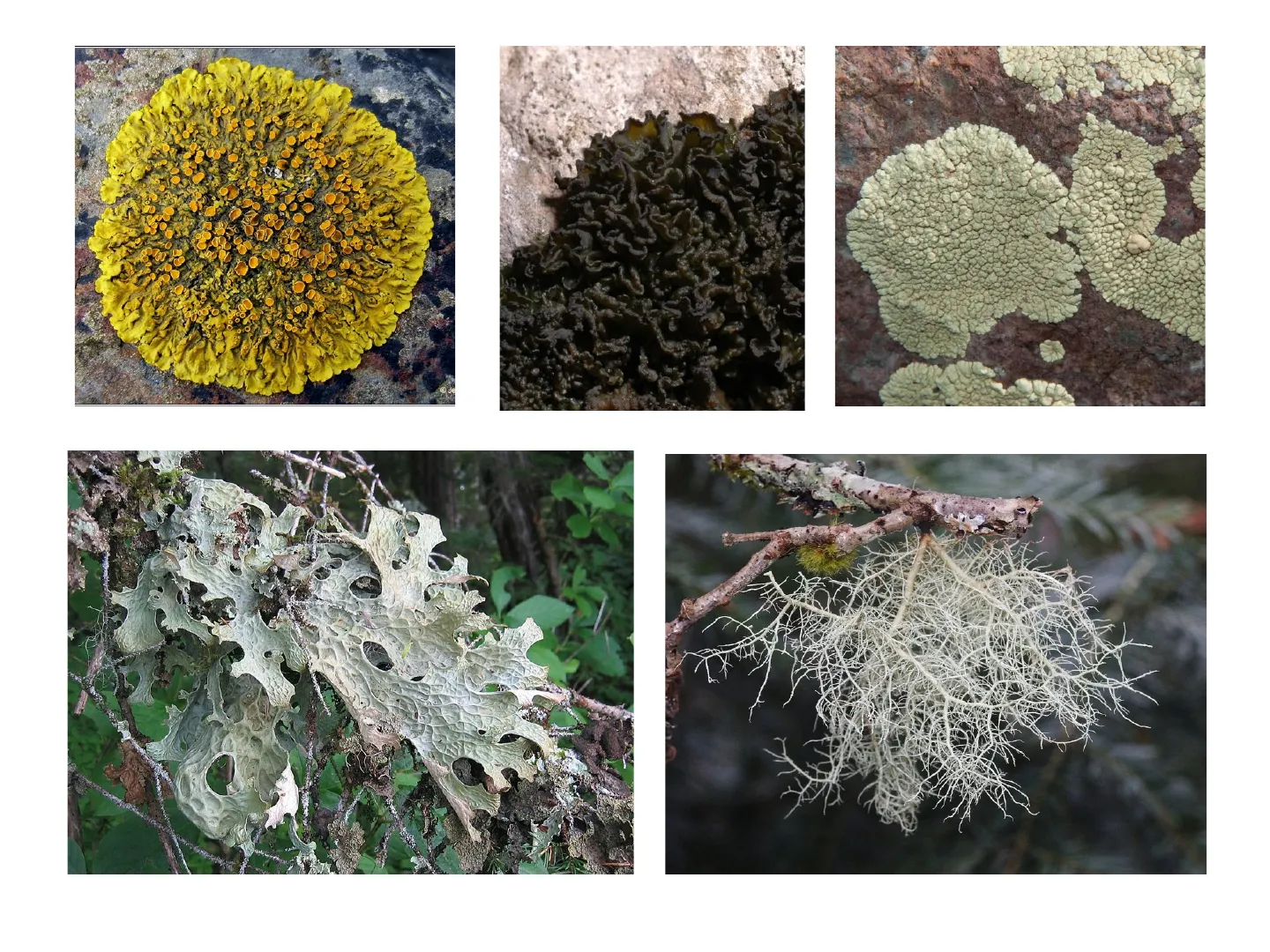 I licheni (assegnati al tipo Mycophycophyta) non sono organismi in senso stretto quanto sono associazioni simbiontiche di organismi fotosintetici e funghi.
