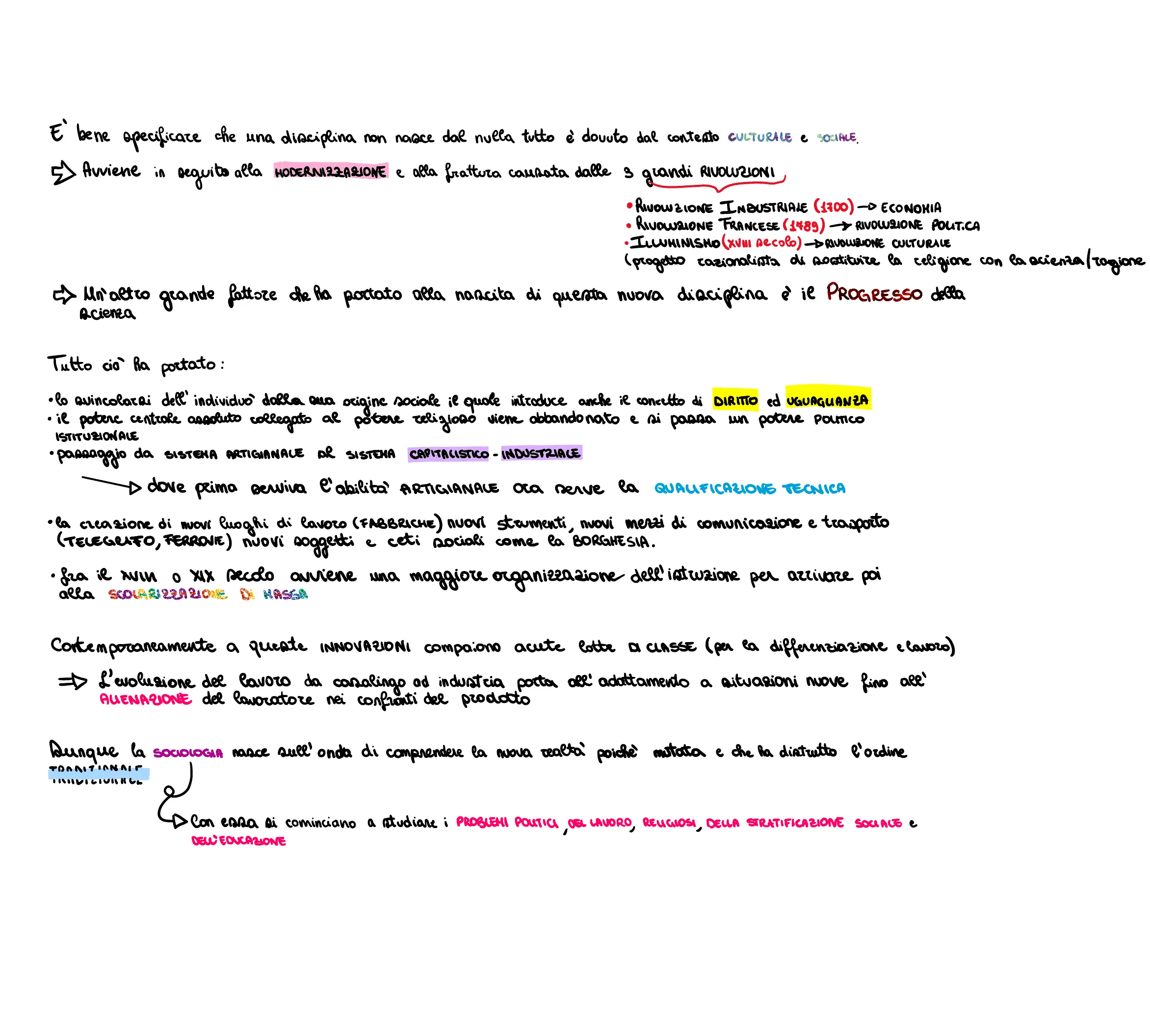 Contemporaneamente a quente INNOVAZIONI compaiono acute lotte DI CLASSE (per la differenziazione e lavoro) L'evoluzione del lavoro da casalingo ad industria porta all'adattamento a situazioni nuove fino all' ALIENAZIONE del lavoratore nei confronti del prodotto Aunque la SOCIOLOGIA nasce sull'onda di comprendere la nuova realtà poichè mutata e che ha distrutto l'ordine TRADITIONAIT Con essa si cominciano a studiare i PROBLEMI PORTICI, DEL LAVORO, RELIGIOSI, DELLA STRATIFICAZIONE SOCIALE e DELL'EDUCAZIONE