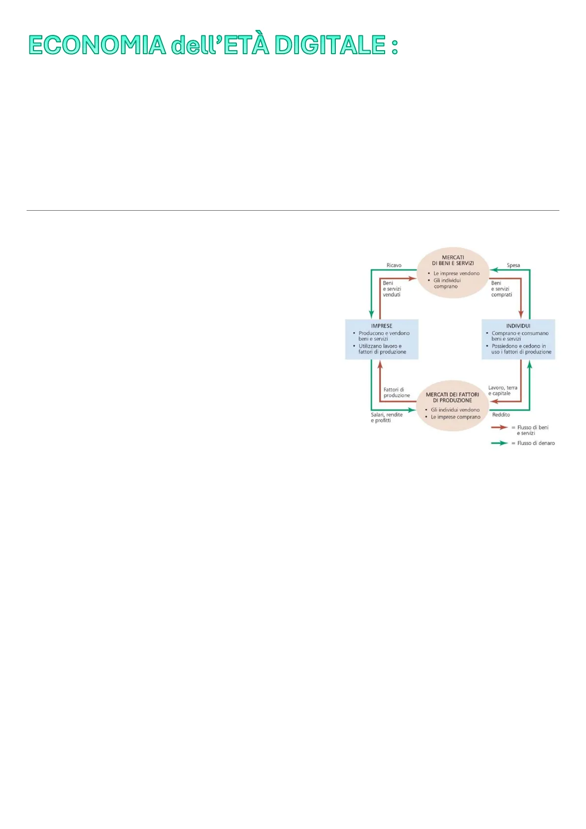 Mercato: gruppo di agenti economici che scambiano un bene o un servizio; nel mercato domanda e offerta