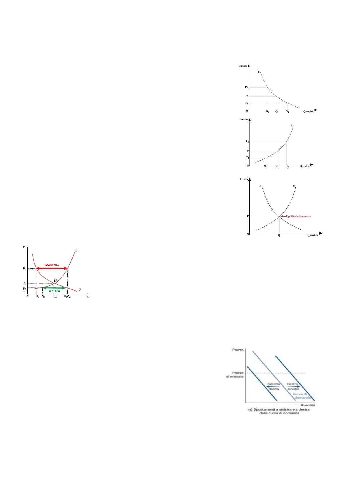 Quando p=p1: Q4>Q1 + ECCEDENZA (Offerta>Domanda)