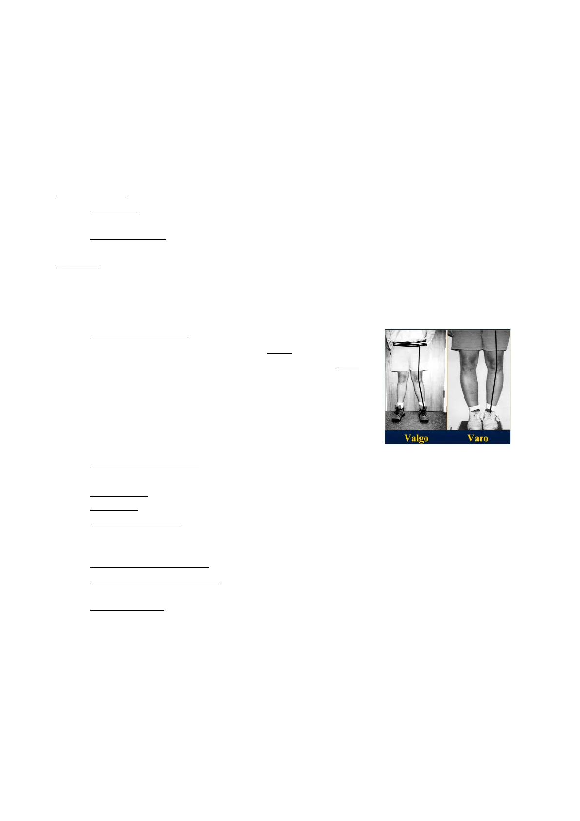 Allineamento assiale, ovvero l'angolo formato dai segmenti degli arti in rapporto alla linea dritta. Valgo: i due segmenti puntano verso la linea mediana (angolo convesso) e varo: i due segmenti puntano verso la linea laterale (angolo concavo), per migliorare il valgismo o il varismo nei bambini si eseguono piccoli interventi chirurgici a livello della cartilagine di accrescimento (si inseriscono delle graffette nella cartilagine di accrescimento o medialmente, nel caso di valgismo, o lateralmente, nel caso di varismo). Valgo Varo Allineamento rotatorio dell'arto, ovvero la torsione dell'arto rispetto al suo asse longitudinale, può essere antiverso o retroverso.