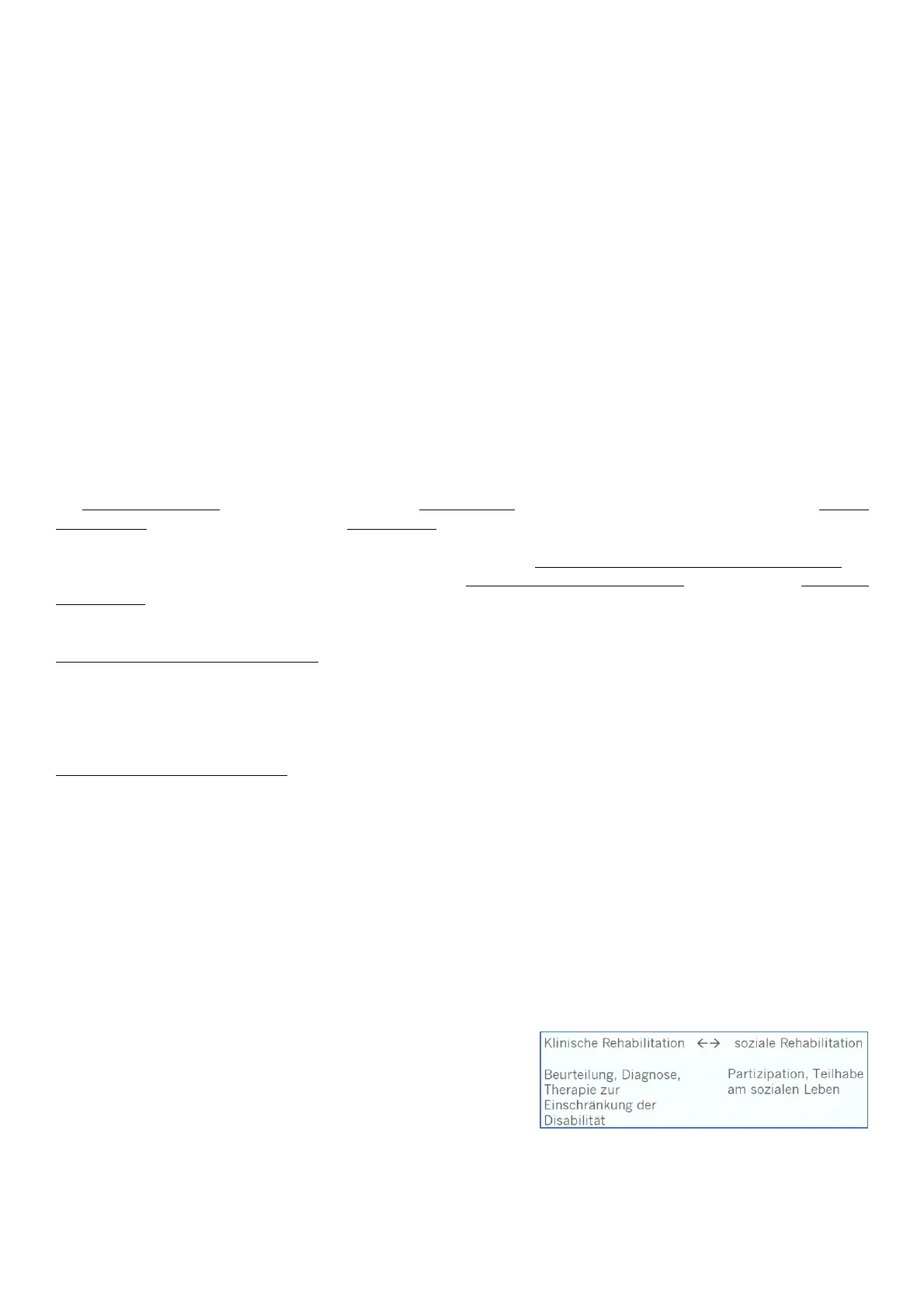 Klinische Rehabilitation soziale Rehabilitation Beurteilung, Diagnose, Partizipation, Teilhabe am sozialen Leben Therapie zur Einschränkung der Disabilität