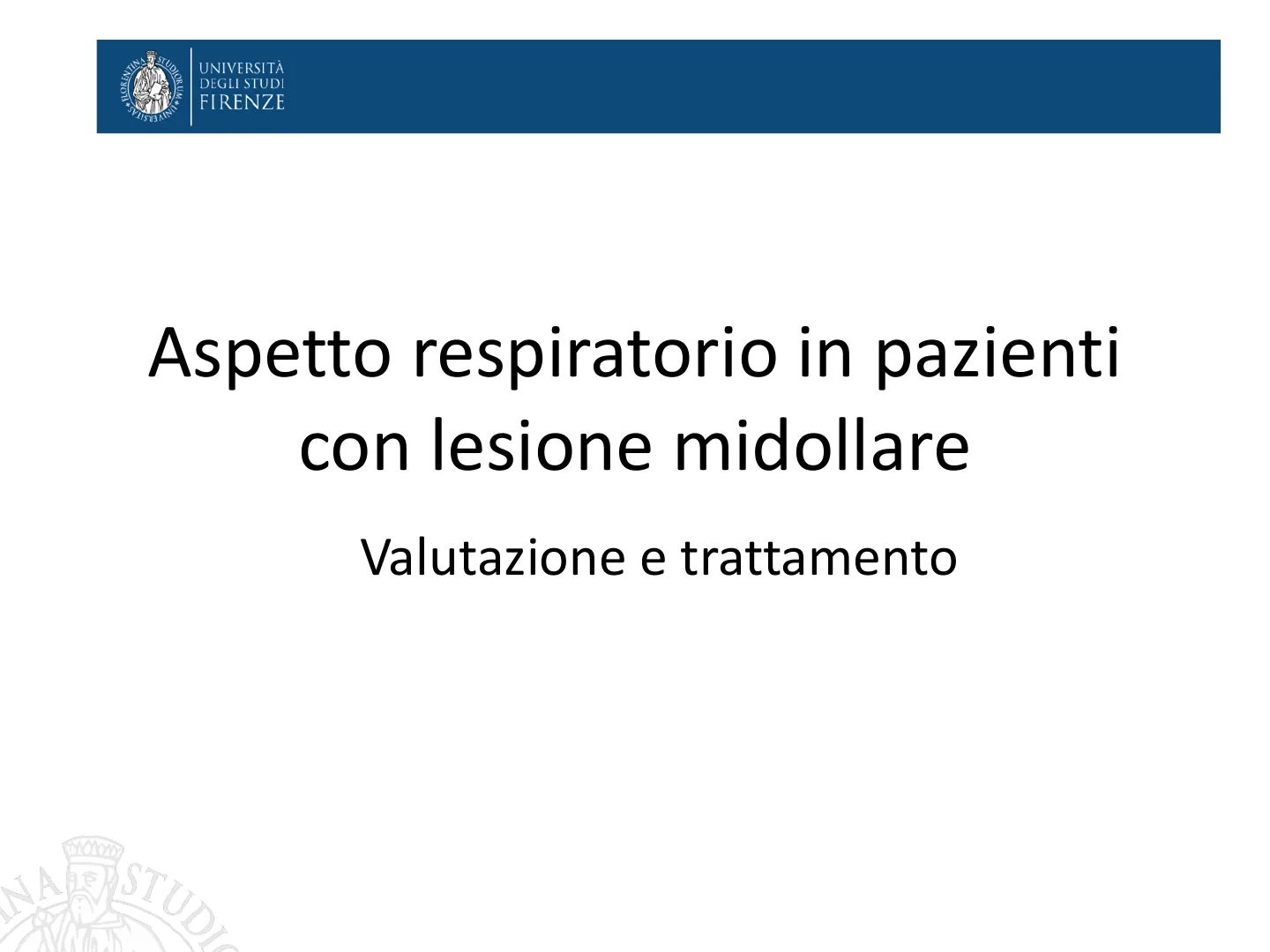 Slide dall'Università degli Studi Firenze su Aspetto respiratorio in pazienti con lesione midollare. Il Pdf esplora il controllo volontario e involontario della respirazione, l'impatto delle lesioni midollari sul sistema respiratorio e l'innervazione dei muscoli respiratori, utile per lo studio universitario di Fisioterapia.