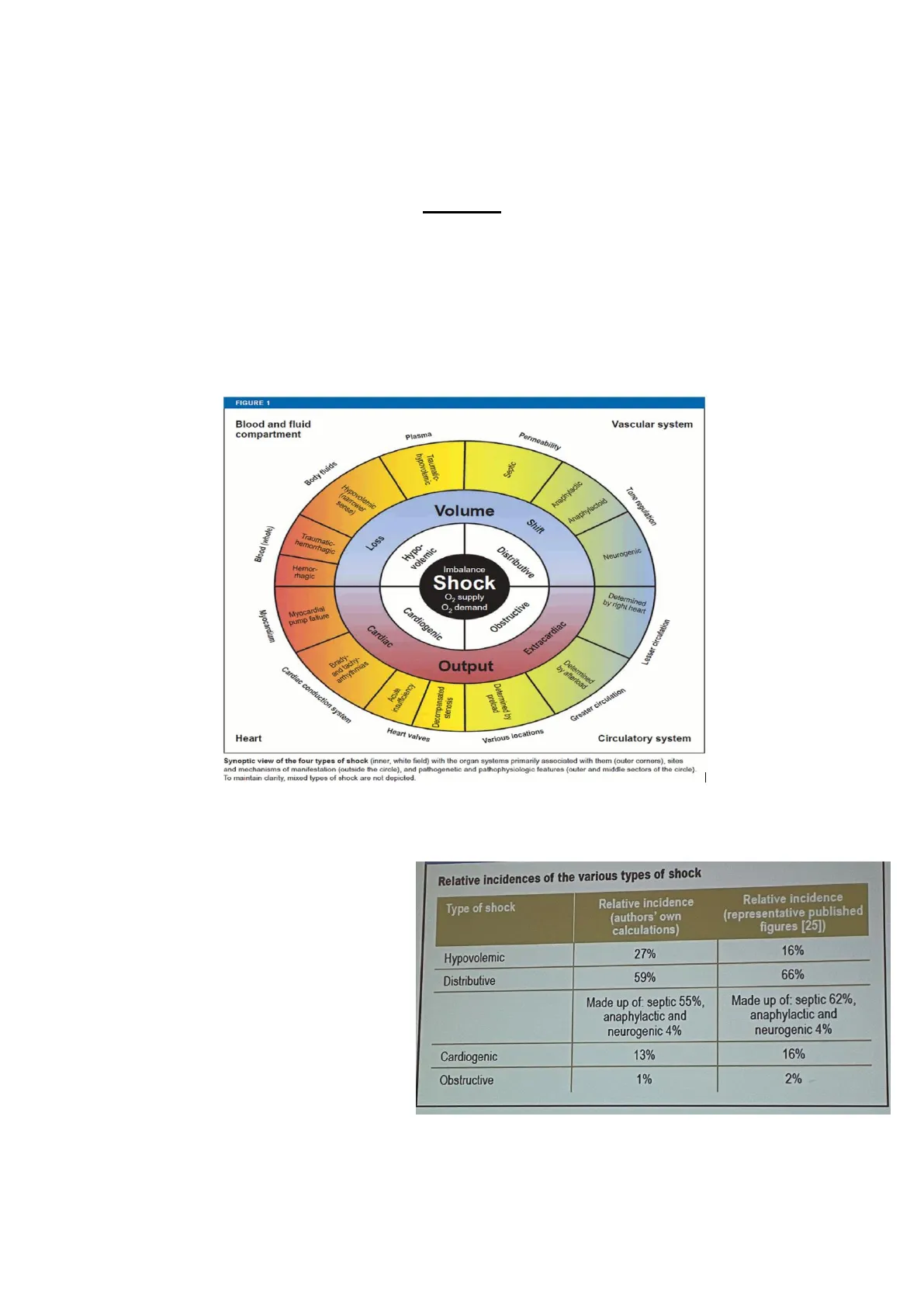 Type of shock Relative incidence (authors' own calculations) Relative incidence (representative published figures [25]) Hypovolemic 27% 16% Distributive 59% 66% Made up of: septic 55%, anaphylactic and neurogenic 4% Made up of: septic 62%, anaphylactic and neurogenic 4% Cardiogenic 13% 16% Obstructive 1% 2% Brady- and tachy- arrhythmias Cardiac Obstructive Distributive Neurogenic Shift Anaphylactic