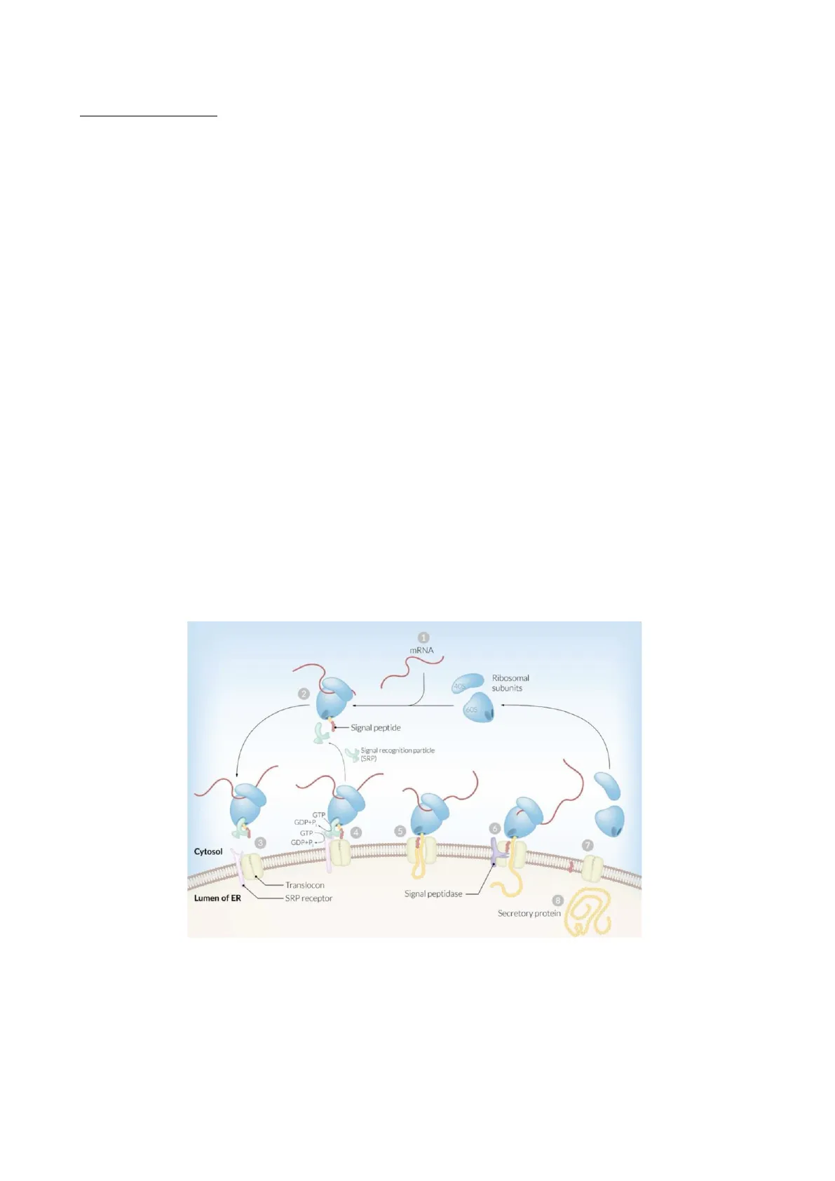 1 mRNA Ribosomal subunits 405 2 60S Signal peptide Signal recognition particle (SRP) GTE GDP+P 6 GTP 4 6 3 GDP+P - Cytosol Translocon Signal peptidase Lumen of ER SRP receptor 8 Secretory protein