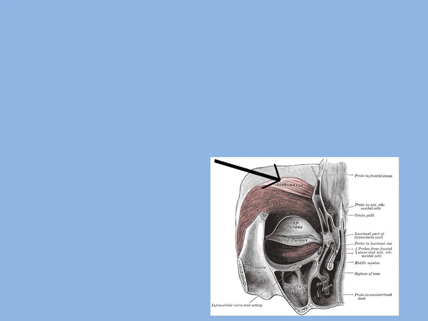 dalla congiuntiva, dai muscoli oculari estrinseci e dal grasso retro bulbare.Il sopracciglio è quella zona di cute, posta superiormente alle palpebre, rivestita di
