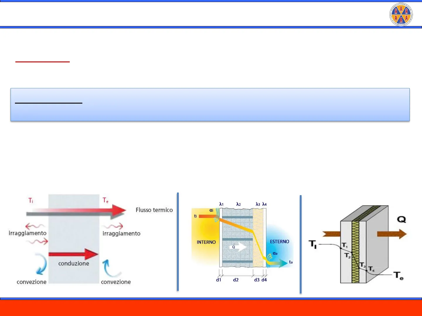 Ti Te Flusso termico irraggiamento irraggiamento conduzione T. TA Te e convezione convezione λι λ2 λ3 λα ai ti Q INTERNO ESTERNO Q da T2 ta d1 d2 d3 d4 T, Prof. Giuseppe Peter VanoliUniversità degli Studi del Molise - Corso di Laurea in Ingegneria Medica Fisica Tecnica e Trasmissione del Calore LICAE UTILITATI . UNIVERSE LOUISE . SCIENTIA DE
