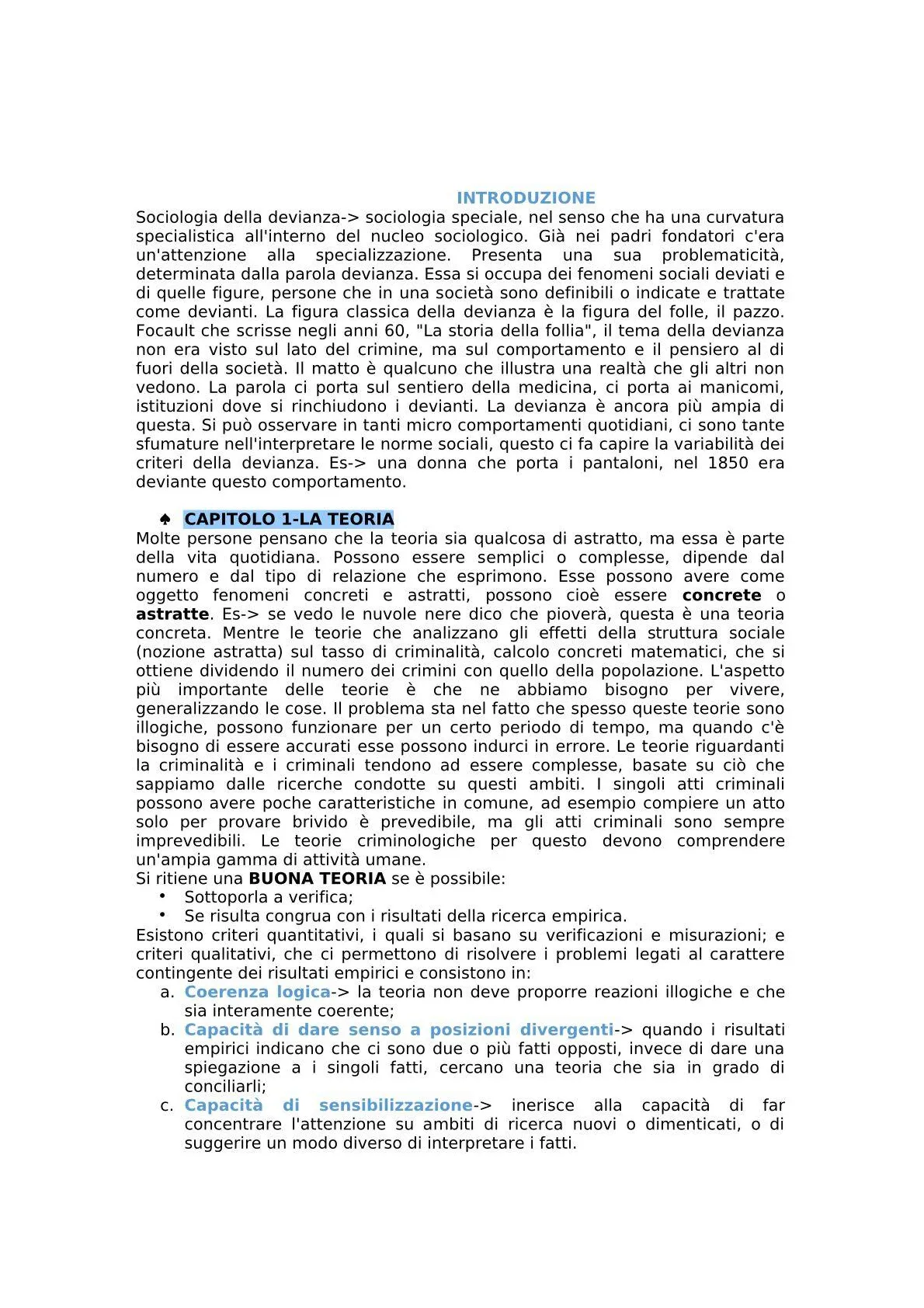 Sociologia della devianza-> sociologia speciale, nel senso che ha una curvatura specialistica all'interno del nucleo sociologico. Già nei padri fondatori c'era un'attenzione alla specializzazione. Presenta una sua problematicità, determinata dalla parola devianza. Essa si occupa dei fenomeni sociali deviati e di quelle figure, persone che in una società sono definibili o indicate e trattate come devianti. La figura classica della devianza è la figura del folle, il pazzo. Focault che scrisse negli anni 60, "La storia della follia", il tema della devianza non era visto sul lato del crimine, ma sul comportamento e il pensiero al di fuori della società. Il matto è qualcuno che illustra una realtà che gli altri non vedono. La parola ci porta sul sentiero della medicina, ci porta ai manicomi, istituzioni dove si rinchiudono i devianti. La devianza è ancora più ampia di questa. Si può osservare in tanti micro comportamenti quotidiani, ci sono tante sfumature nell'interpretare le norme sociali, questo ci fa capire la variabilità dei criteri della devianza. Es-> una donna che porta i pantaloni, nel 1850 era deviante questo comportamento.