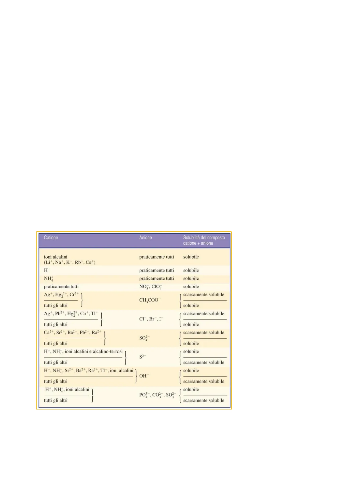 | Ag+, Hg22+, Cr2 | CH3COO- | tutti gli altri solubile |