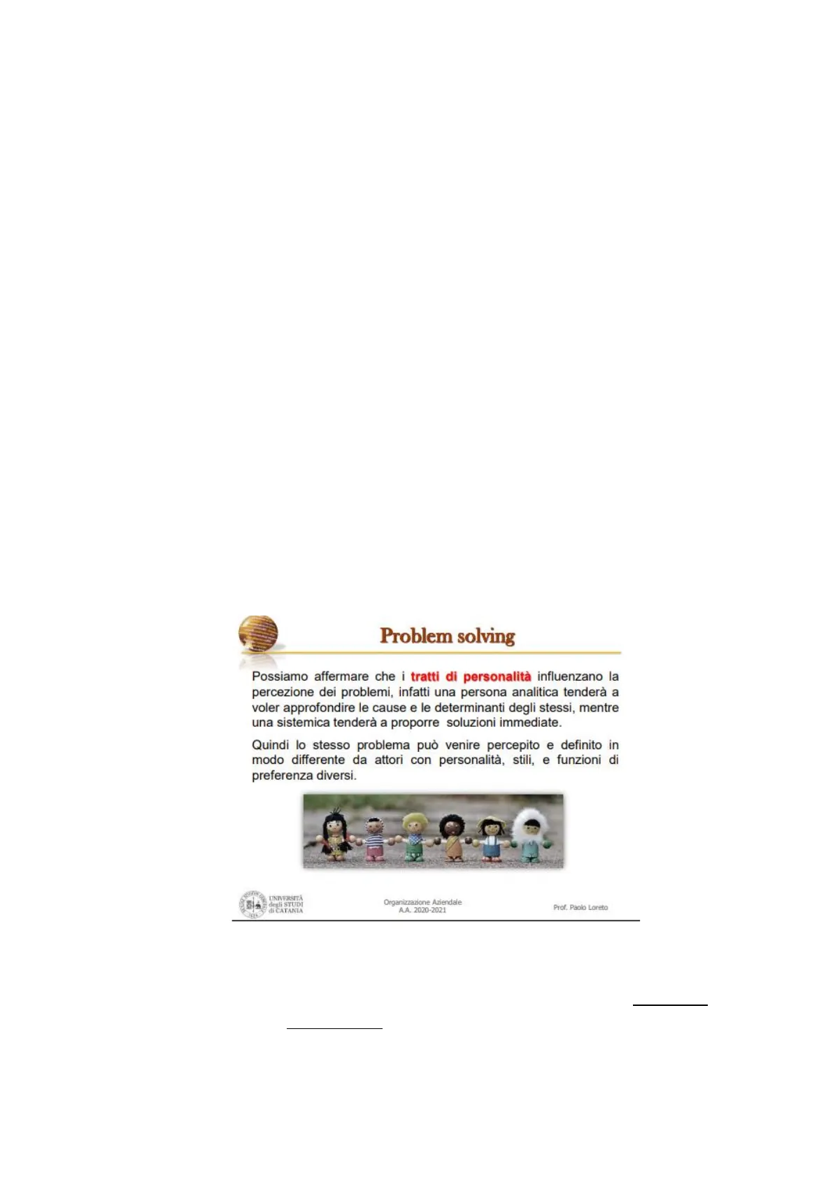 Quindi lo stesso problema può venire percepito e definito in modo differente da attori con personalità, stili, e funzioni di preferenza diversi.