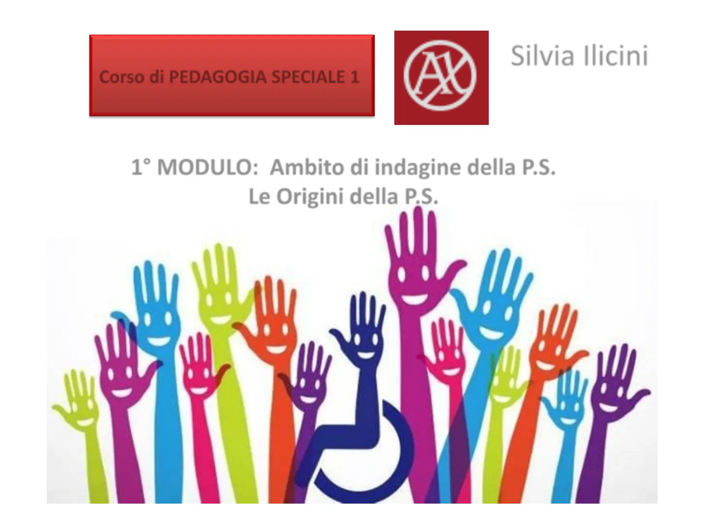 Slide da Ax su Corso di Pedagogia Speciale 1. Il Pdf, utile per studenti universitari di Psicologia, esplora l'ambito di indagine e le origini storiche della Pedagogia Speciale, analizzando l'evoluzione del concetto di diversità e disabilità dall'età greco-romana all'Illuminismo.