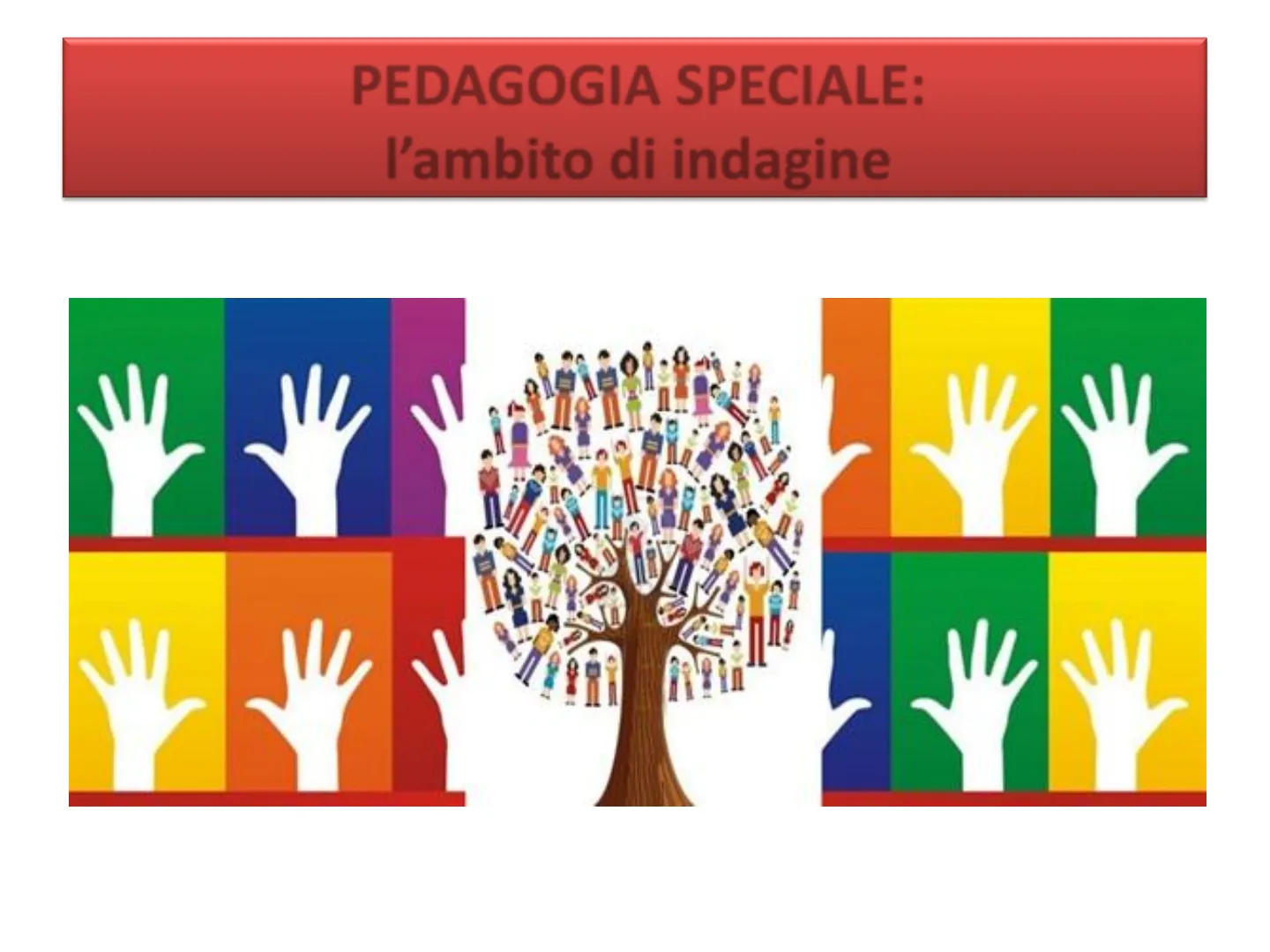 Perché Pedagogia "SPECIALE"? Cosa significa "Speciale" (senso diffuso del termine): https://www.treccani.it/vocabolario/speciale/ a. Non comune, fuori dell'ordinario, di genere particolare: per questo tipo di stampa è necessario un inchiostro s .; sono operazioni che richiedono s. attenzione; lo tratta con s. riguardi. b. Detto di ciò che, per le sue caratteristiche, è destinato all'uso esclusivo di determinate categorie di persone: istituire un treno s .; concessioni s. c. Che costituisce un'eccezione alla norma, che è pensato, istituito e sim. in o per circostanze straordinarie: gode di privilegi s .; ha avuto un incarico s .; agente s .; inviato s .; offerta s., vendita promozionale e di propaganda di prodotti e beni di consumo (detersivi in offerta s.); in contrapp. a ordinario, detto di attività o mezzi cui si ricorre in casi di particolare necessità: esami s .; tribunale speciale. d. Detto di merce, prodotto alimentare, preparazione gastronomica e sim., di qualità superiore al normale, di particolare eccellenza: le manderò un vino s .; queste tagliatelle sono veramente s .; più genericam., detto di ciò che si distingue favorevolmente, che spicca nel suo genere: meritare una menzione speciale. e. Nell'uso fam., bizzarro, strano, dal comportamento singolare: è un tipo un po' s .; in famiglia siete tutti speciali.