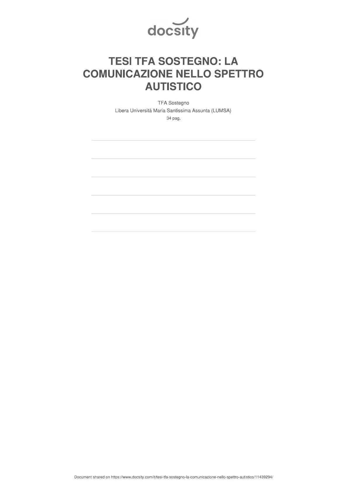 TESI TFA SOSTEGNO: LA COMUNICAZIONE NELLO SPETTRO AUTISTICO TFA Sostegno Libera Università Maria Santissima Assunta (LUMSA) 34 pag. Document shared on https://www.docsity.com/it/tesi-tfa-sostegno-la-comunicazione-nello-spettro-autistico/11439294/Introduzione.