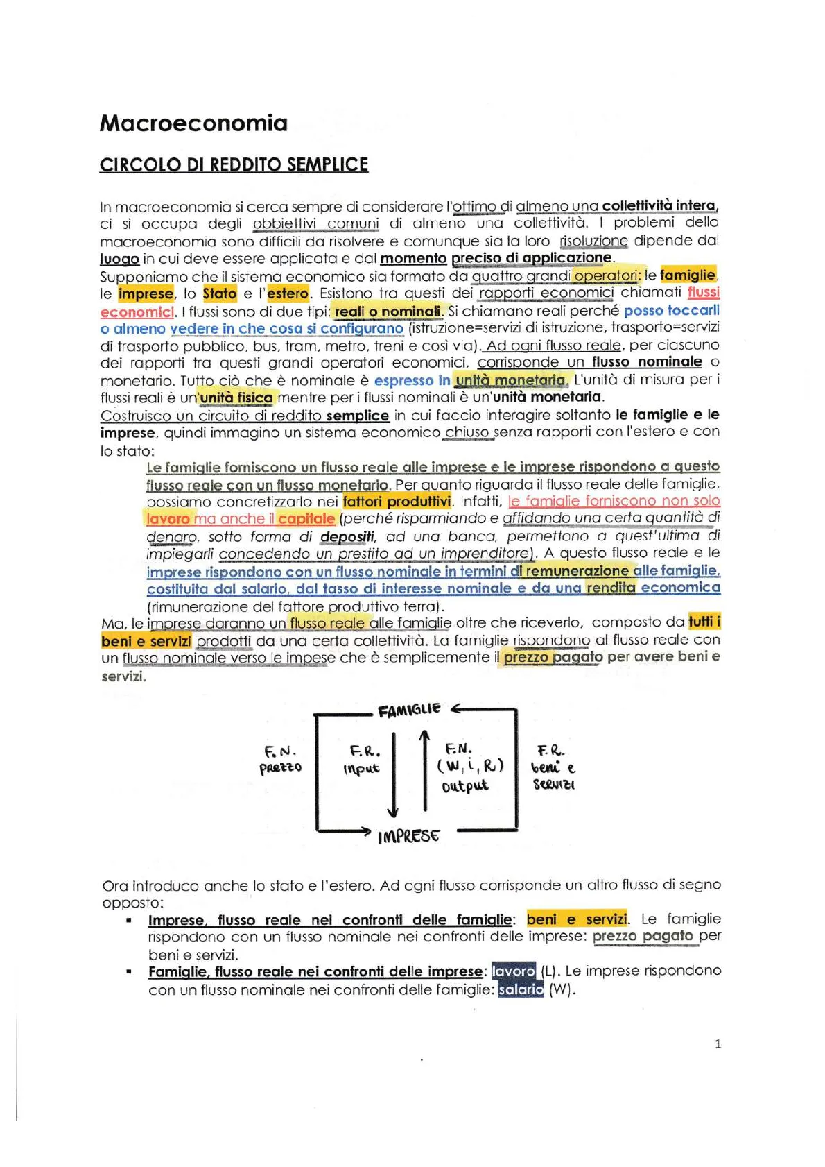 Supponiamo che il sistema economico sia formato da quattro grandi operatori: le famiglie, le imprese, lo Stato e l'estero. Esistono tra questi dei rapporti economici chiamati flussi economici. I flussi sono di due tipi: reali o nominali. Si chiamano reali perché posso toccarli o almeno vedere in che cosa si configurano (istruzione=servizi di istruzione, trasporto=servizi di trasporto pubblico, bus, tram, metro, treni e così via). Ad ogni flusso reale, per ciascuno dei rapporti tra questi grandi operatori economici, corrisponde un flusso nominale o monetario. Tutto ciò che è nominale è espresso in unità monetaria, L'unità di misura per i flussi reali è un'unità fisica mentre per i flussi nominali è un'unità monetaria.