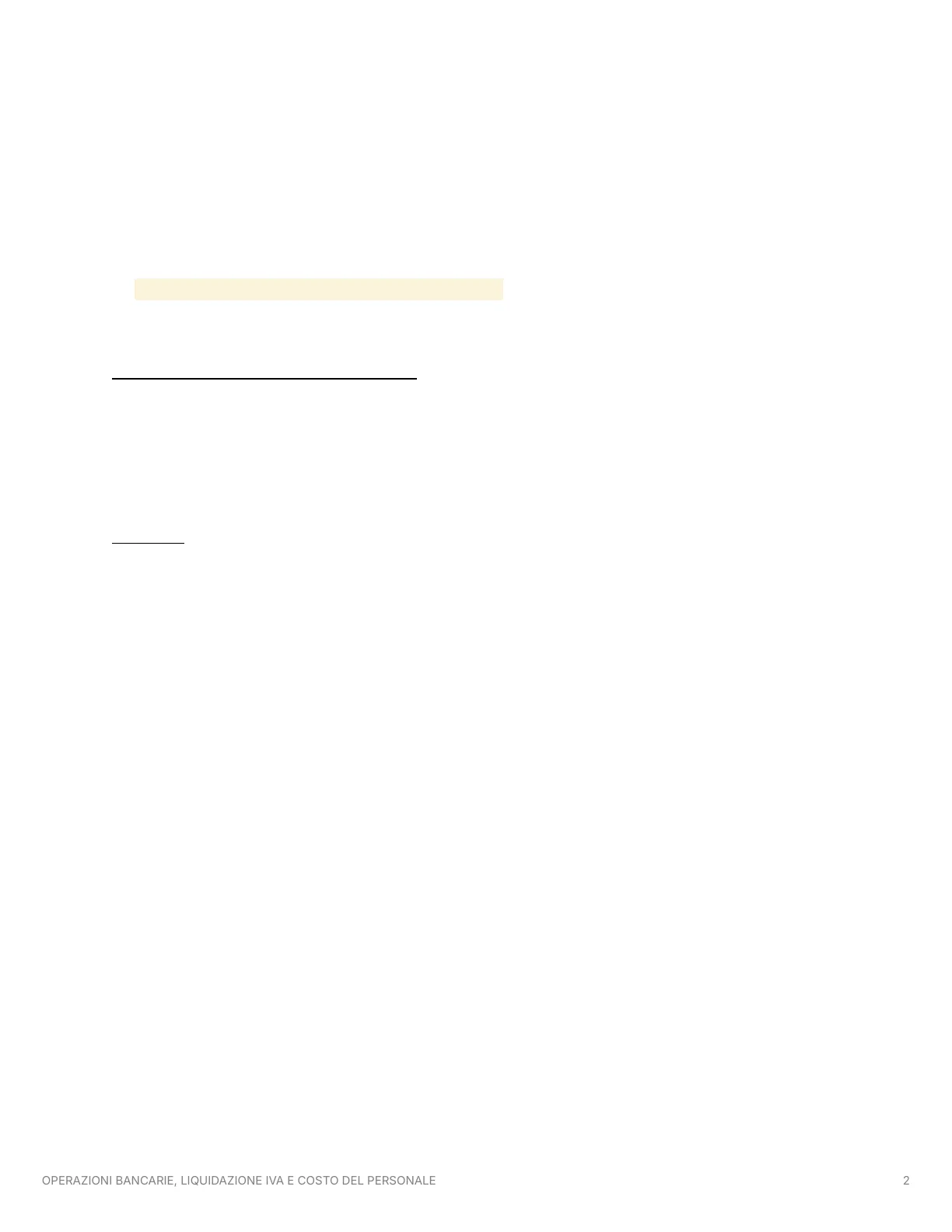 OPERAZIONI BANCARIE, LIQUIDAZIONE IVA E COSTO DEL PERSONALE