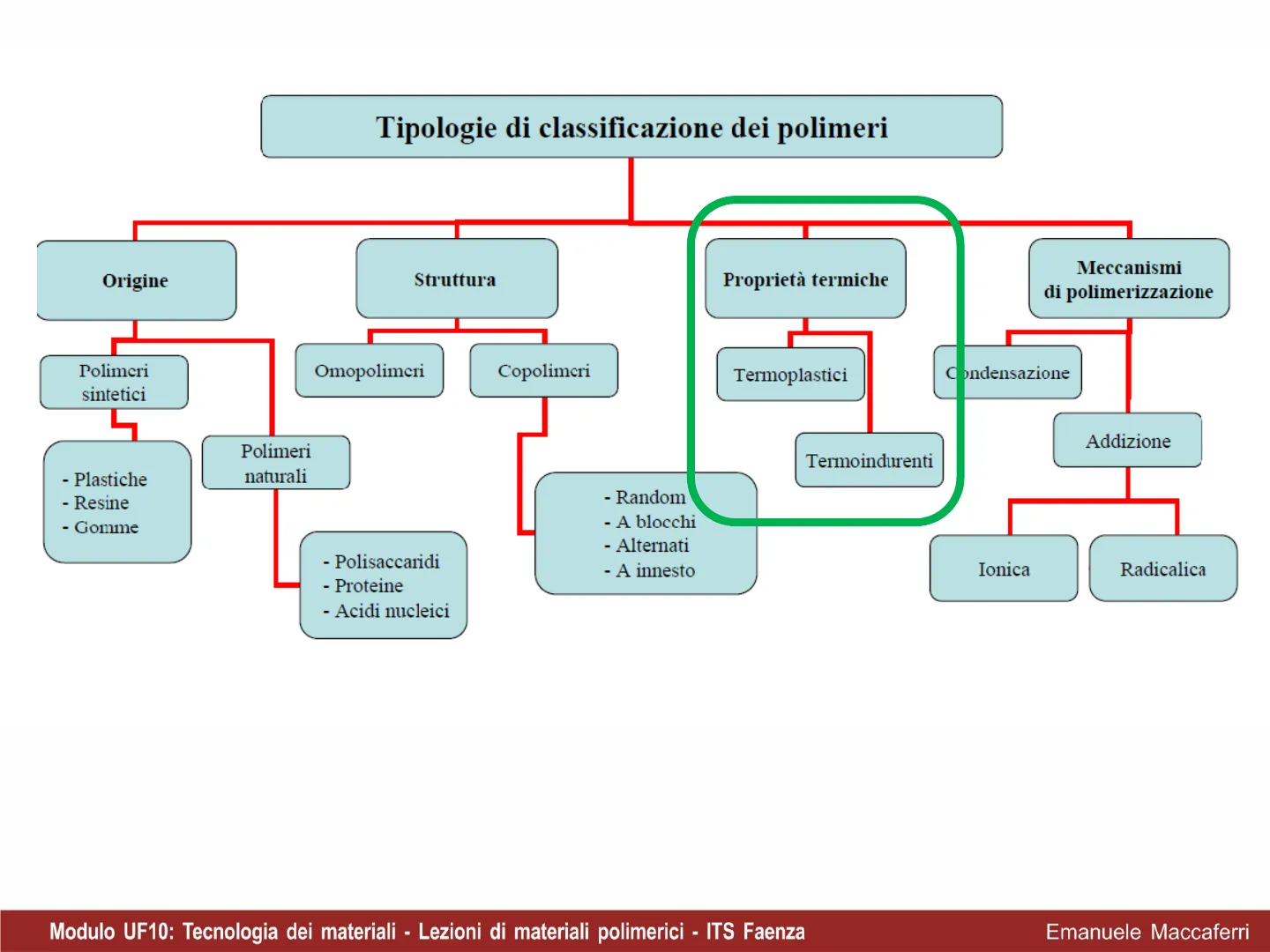 Modulo UF10: Tecnologia dei materiali - Lezioni di materiali polimerici - ITS Faenza Emanuele MaccaferriTipologie di classificazione dei polimeri