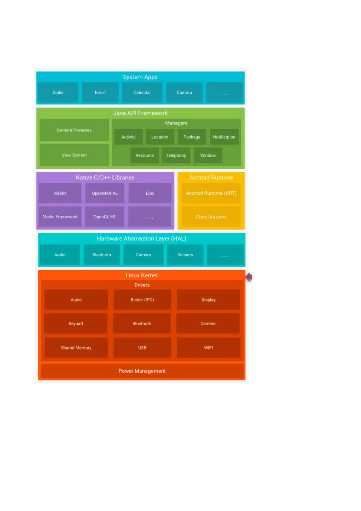 Drivers Audio Binder (IPC) Display Keypad Bluetooth Camera Shared Memory USB WIFI Power Management