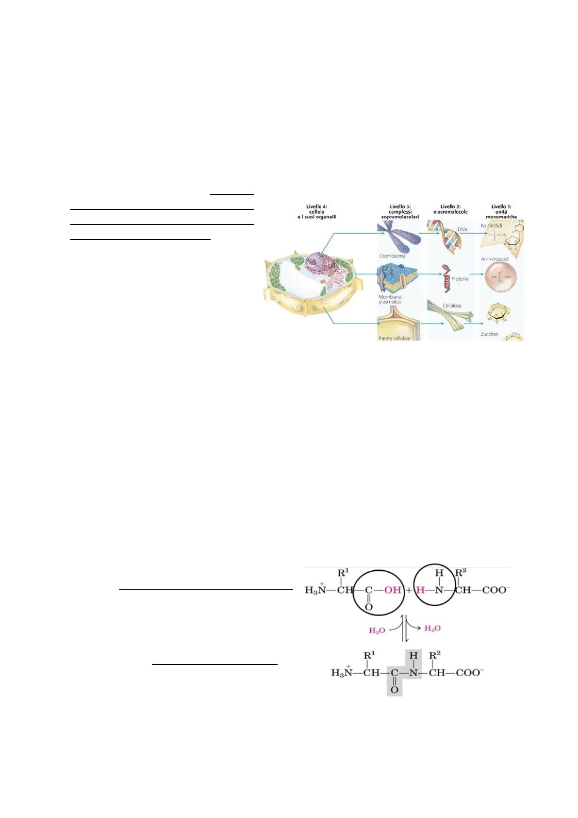 Le macromolecole sono polimeri costituiti da unità monomeriche e si formano attraverso processi di condensazione, ovvero addizione di diversi monomeri con il rilascio di una molecola di acqua. Quando un monomero si addiziona ad un altro monomero, il gruppo ossidrilico stacca il protone che va via sotto forma di molecola di acqua.