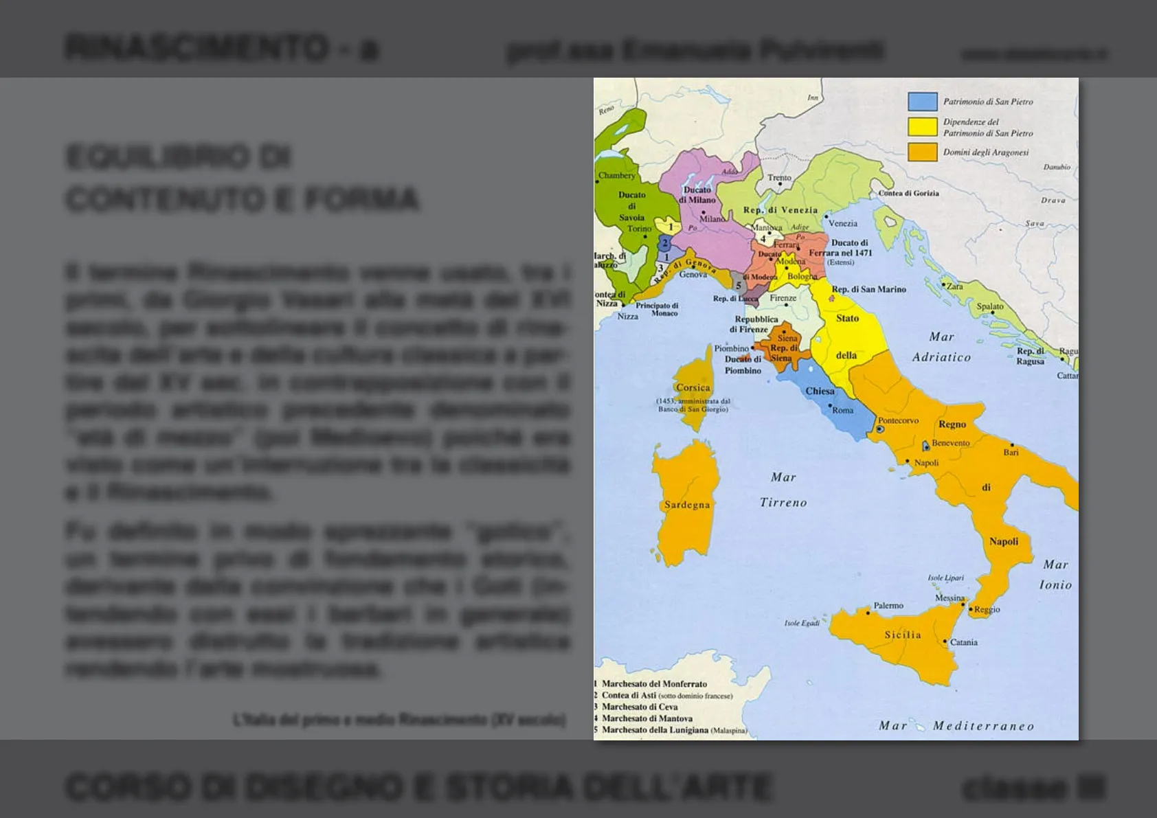 CORSO DI DISEGNO E STORIA DELL'ARTE classe III Reno Danubio Contea di Gorizia Rep. di Venezia Venezia 1 2 Rep. di Genot Rep. di San Marino Principato di Monaco