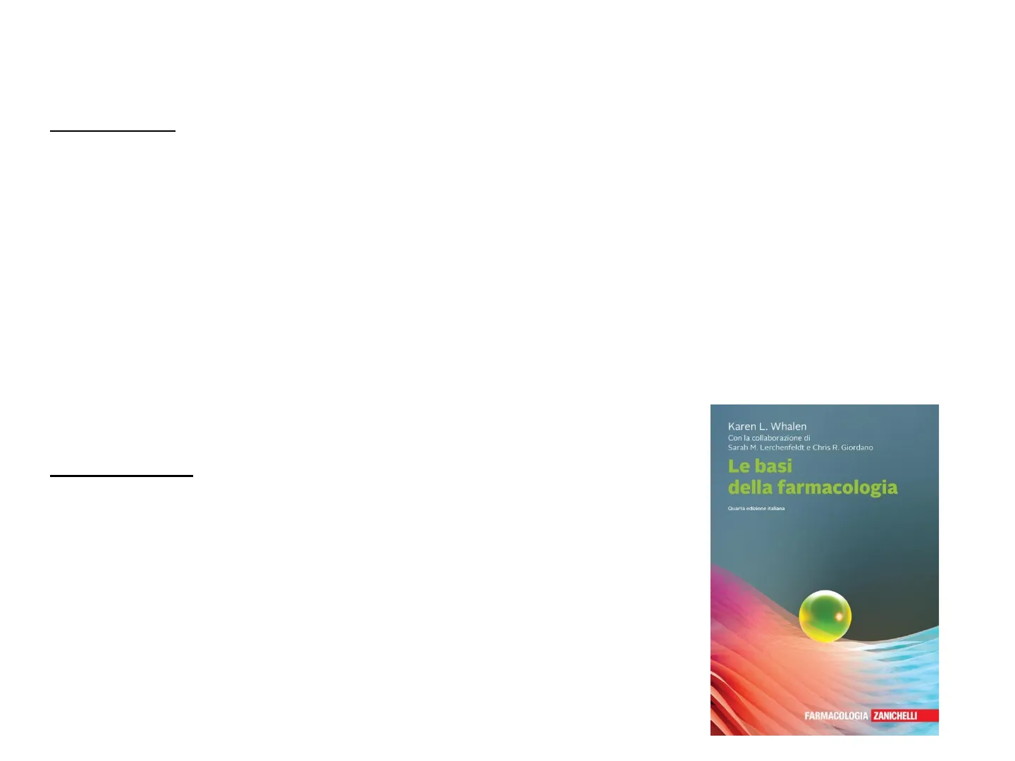 Karen L. Whalen Con la collaborazione di Sarah M. Lerchenfeldt e Chris R. Giordano Le basi della farmacologia Quarta edizione italiana FARMACOLOGIA ZANICHELLI