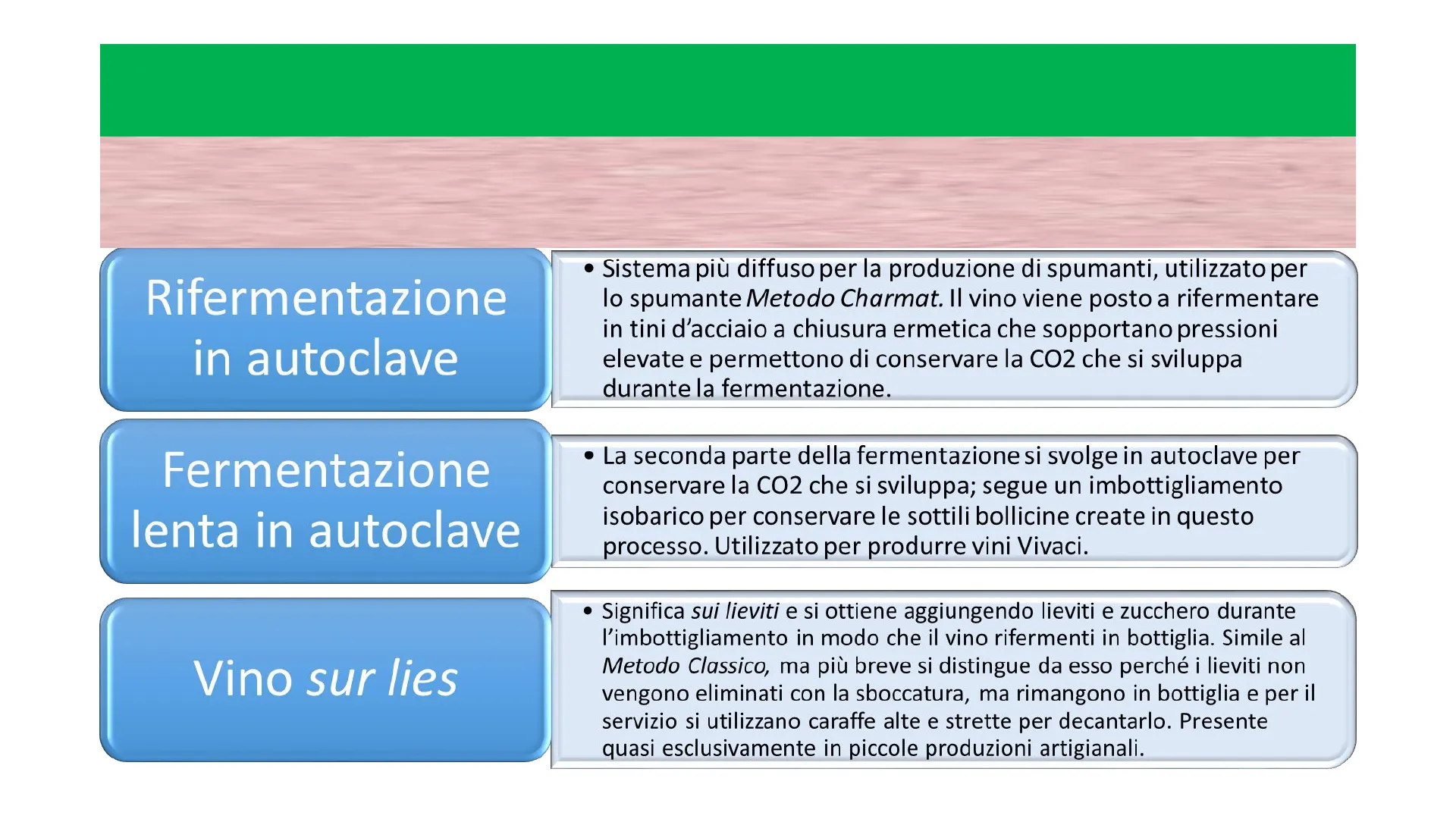 Di seguito verranno descritte le tecniche produttive dei vini con caratteristiche diverse dai vini secchi