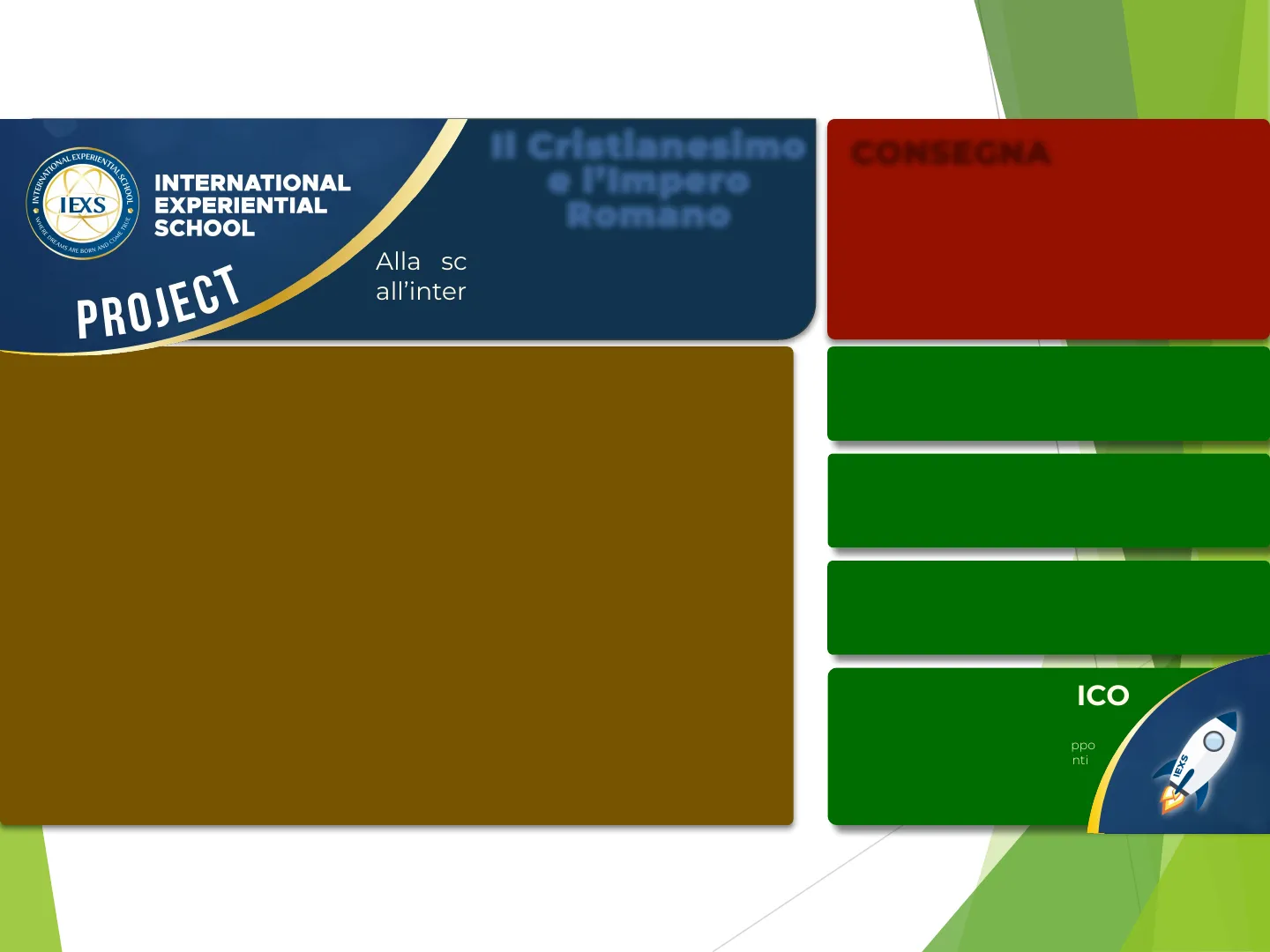 Slide da International Experiential School su Gli ultimi secoli dell'Impero Romano. Il Pdf esplora il Cristianesimo e l'Impero Romano, trattando temi come le persecuzioni cristiane e l'Editto di Milano, utile per la materia Storia nella Scuola superiore.