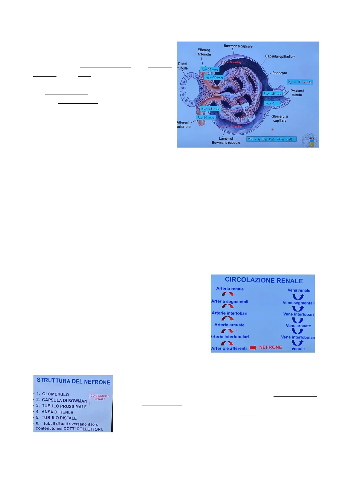 La pressione netta di filtrazione risultante nel rene è di circa 10 mmHg, che è diversa dalla pressione netta di filtrazione risultante negli altri distretti capillari. Per esempio, nel muscolo è di massimo 2 mmHg, nonostante ci sia una filtrazione importante. Questi valori sono indicativi di quanto i reni lavorino: il rene normofunzionante riceve il 25% della gittata cardiaca e filtra circa 180 L/die.