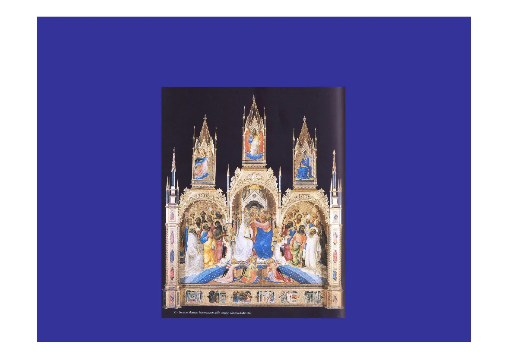 XI - Lorenzo Monaco, Incoronazione delle Vergine, Galleria degli UffiziIl panorama che gli addetti ai lavori del settore si trovano davanti è talmente diversificato ed insidioso da non permettere di concepire l'intervento di restauro come un qualcosa di automatico e conseguente ad un quadro diagnostico definito. Né, tantomeno, si può pensare di risolvere situazioni diverse attraverso una serie di operazioni di "routine" da adattare caso per caso Esiste pertanto una difficoltà oggettiva a trasmettere integralmente nelle relazioni di lavoro tutto il dibattito critico e tecnico che porta alla esecuzione di un intervento di restauro Riveste una importanza enorme operare delle ricerche che producano un miglioramento di quei mezzi tecnici e di quei materiali oggi in uso, ma che lasciano sempre aperto un buon margine al dubbioL'intervento di restauro Dobbiamo innanzitutto tener conto del concetto di equilibrio che regge i rapporti di forze tra gli elementi componenti Le forze e le reazioni che si sviluppano creano quelli che sono gli effetti visibili di un degrado Questa situazione può essere stabile oppure in movimento.L'interpretazione di questo fenomeno è che il supporto, non potendo scaricare nella larghezza i movimenti di ritiro a causa dei vincoli fissi, apre delle linee al suo interno lungo le quali scarica le tensioni accumulate.