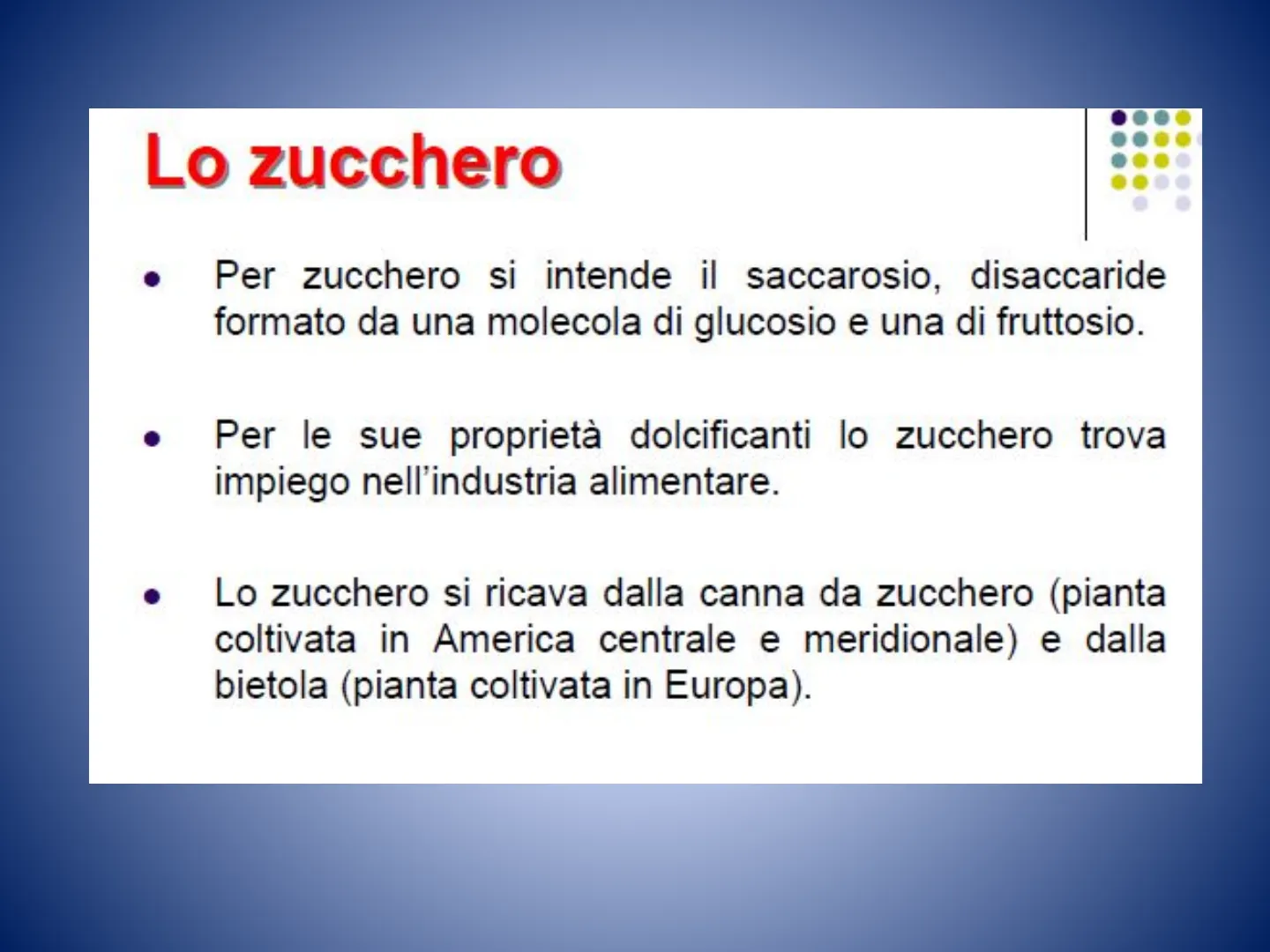 . Per zucchero si intende il saccarosio, disaccaride