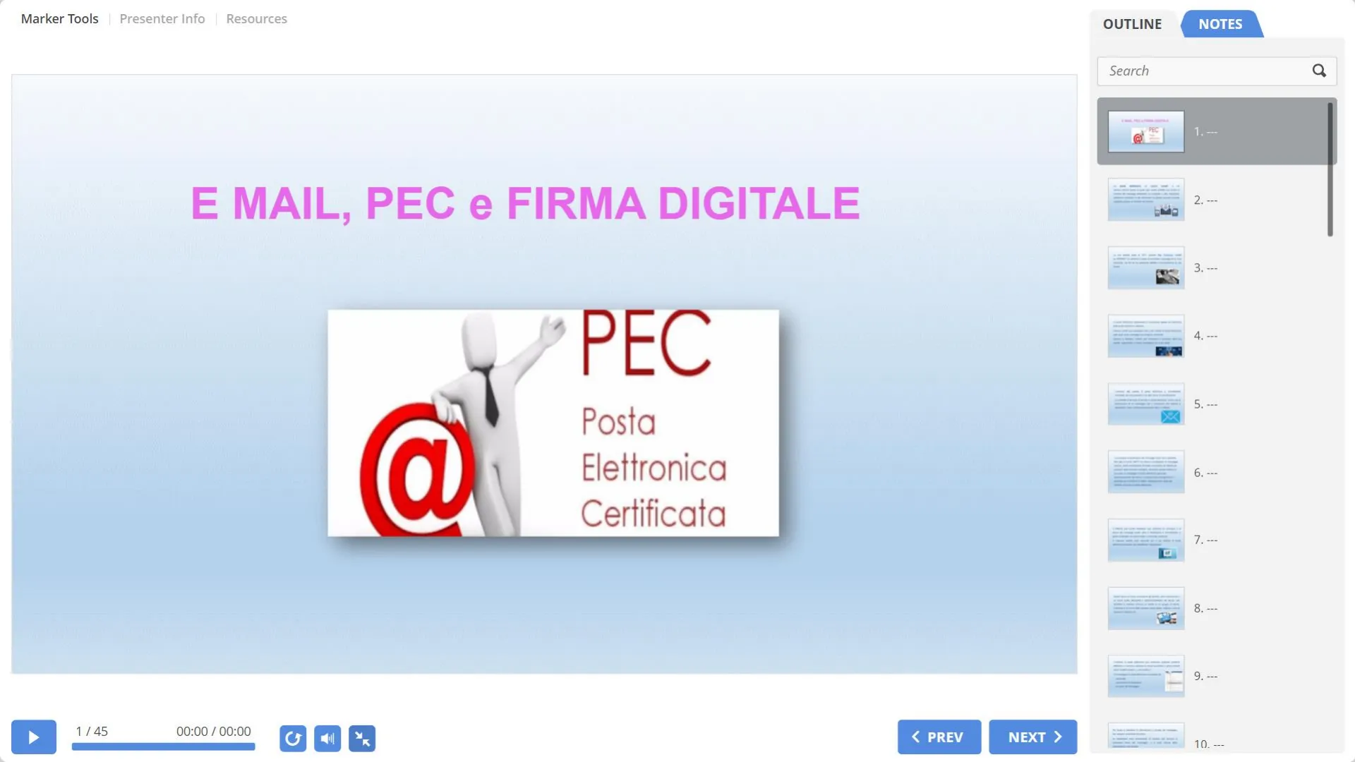 00:00 / 00:00 6 / 45 K < PREV NEXT > 10. ---Marker Tools Presenter Info Resources OUTLINE NOTES Search a