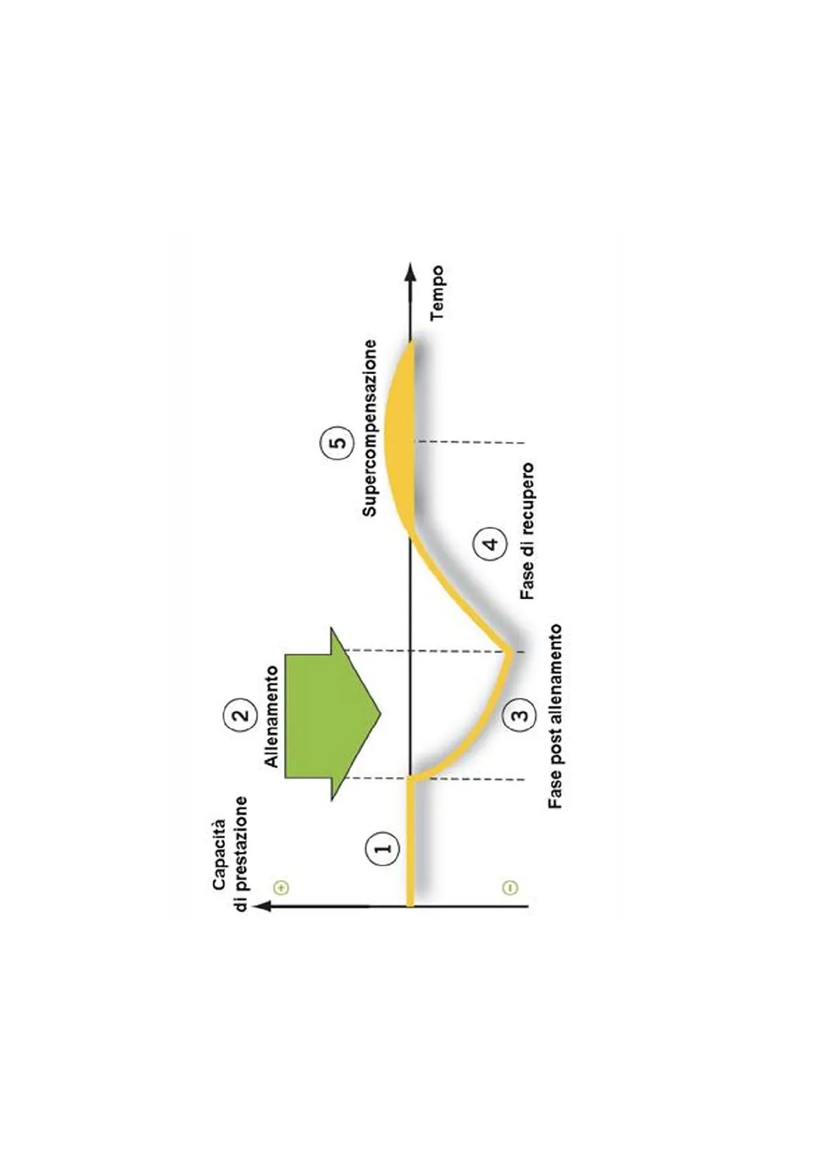 Capacità di prestazione 2 Allenamento 4 5 1 Supercompensazione Tempo 4 O 3 Fase di recupero Fase post allenamentoPrincipi generali dell'allenamento