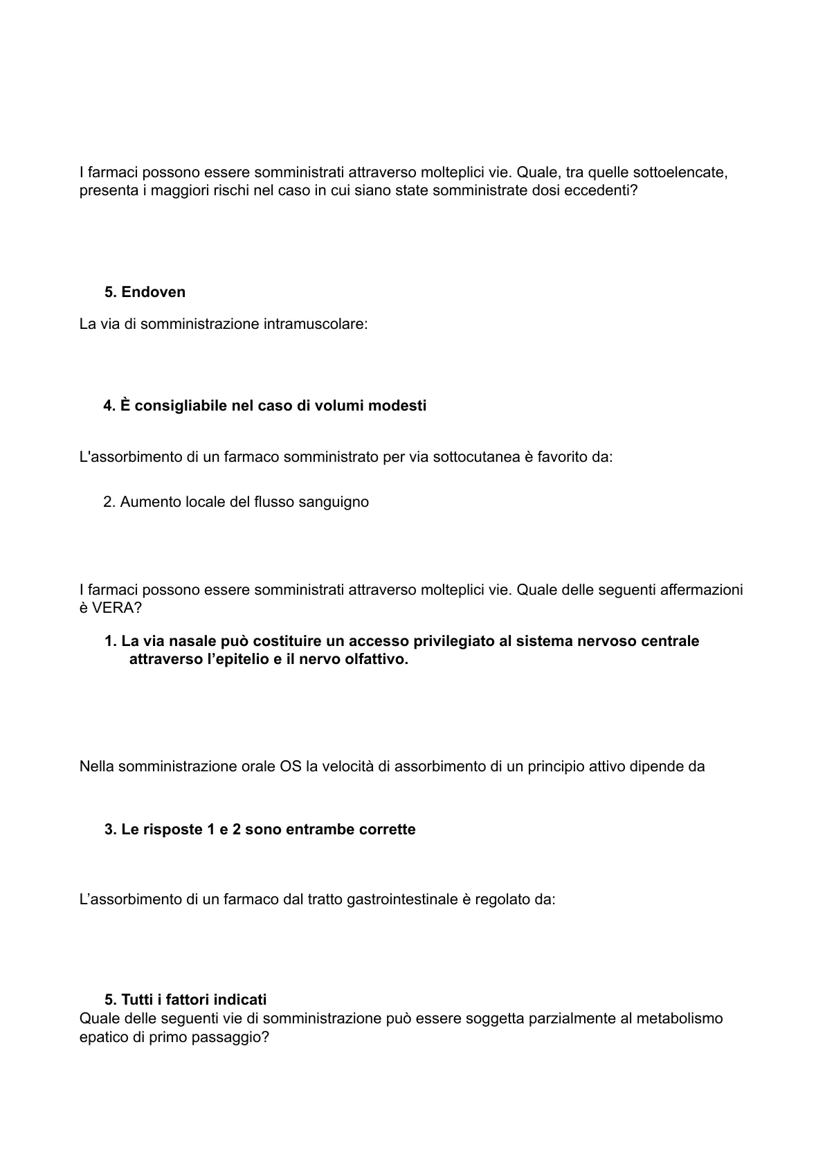 I farmaci possono essere somministrati attraverso molteplici vie. Quale delle seguenti affermazioni