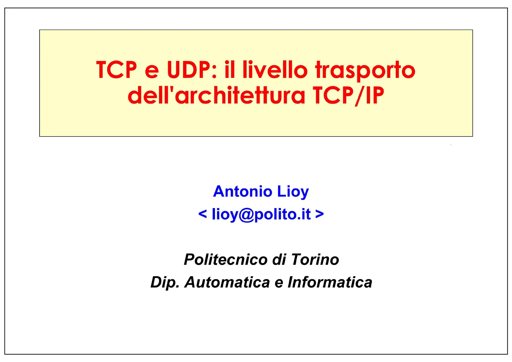 . utile quando: " si opera su rete affidabile (es. LAN o punto-punto) singola PDU può contenere tutti i dati applicativi " non importa che tutti i dati arrivino a destinazione · l'applicazione gestisce meccanismi di ritrasmissione . maggior problema di UDP = il controllo di congestione mittente mantiene il proprio tasso di trasmissione (elevato) anche se la rete è intasata, contribuendo ad intasarla maggiormente proposto DCCP (Datagram Congestion Control Protocol) C A.Lioy (Politecnico di Torino, 2013-2020)