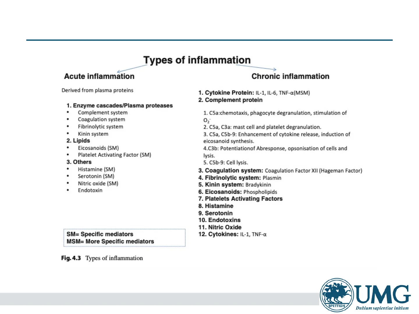 SM= Specific mediators MSM= More Specific mediators https://link.springer.com/chapter/10.1007/978-81-322-2680-2_4 UMG Dubium sapientiae initium ΒΡΕΤΤΙΩΝ 5Infiammazione