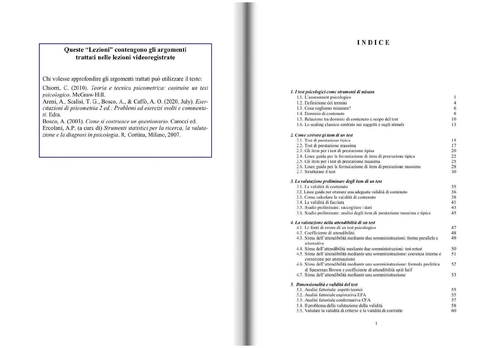 LEZIONI DI TEORIA DEI TEST PSICOLOGICI
