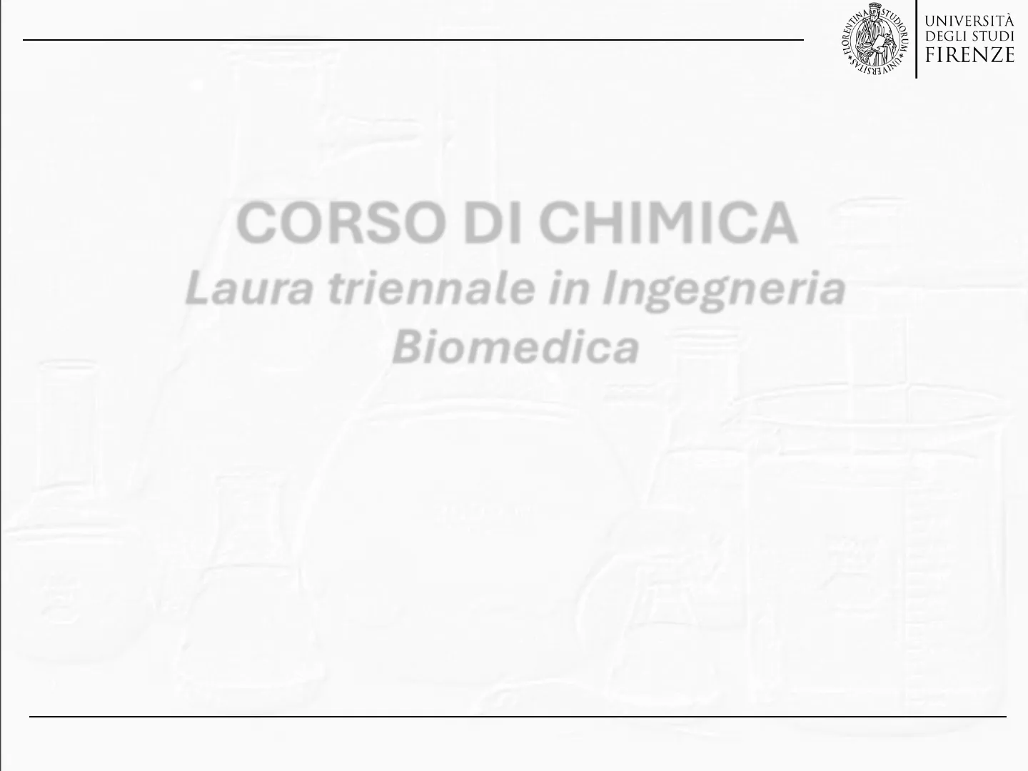 STUI UNIVERSITAS UNIVERSITÀ DEGLI STUDI FIRENZE CORSO DI CHIMICA Laura triennale in Ingegneria Biomedica Giulia Serrano Dipartimento di Ingegneria Industriale Lezione 01 - IntroduzioneCorso di Chimica - Laurea Triennale in Ingegneria Biomedica