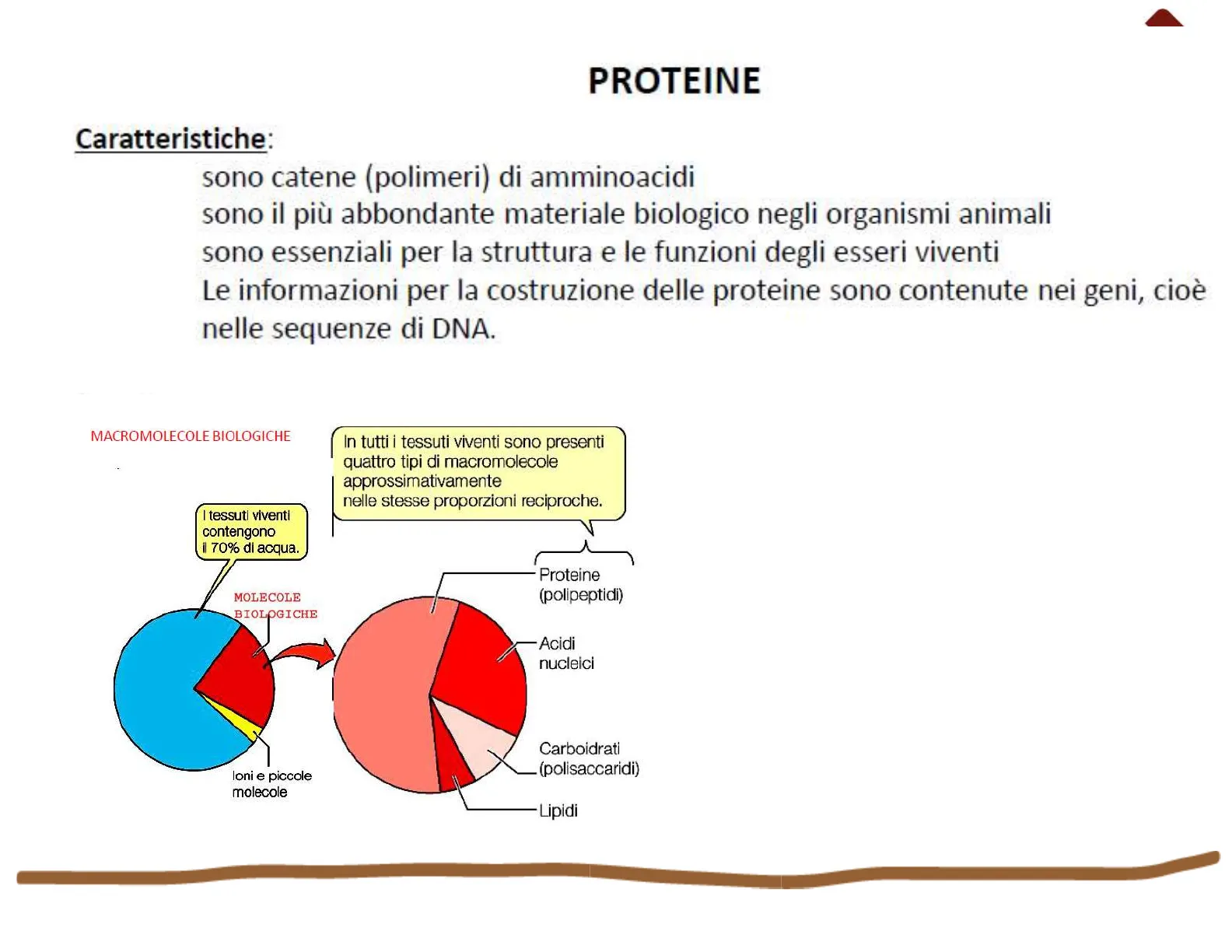 In tutti i tessuti viventi sono presenti quattro tipi di macromolecole approssimativamente nelle stesse proporzioni reciproche. I tessuti viventi contengono il 70% di acqua.