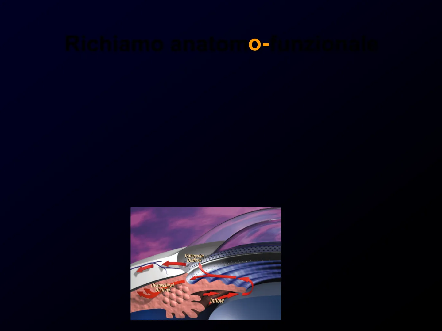 zona di produzione dell'acqueo (processi ciliari) zona di circolazione e scorrimento (camere posteriore ed anteriore) ¾ zona di deflusso (via trabecolare ed uveo-sclerale)