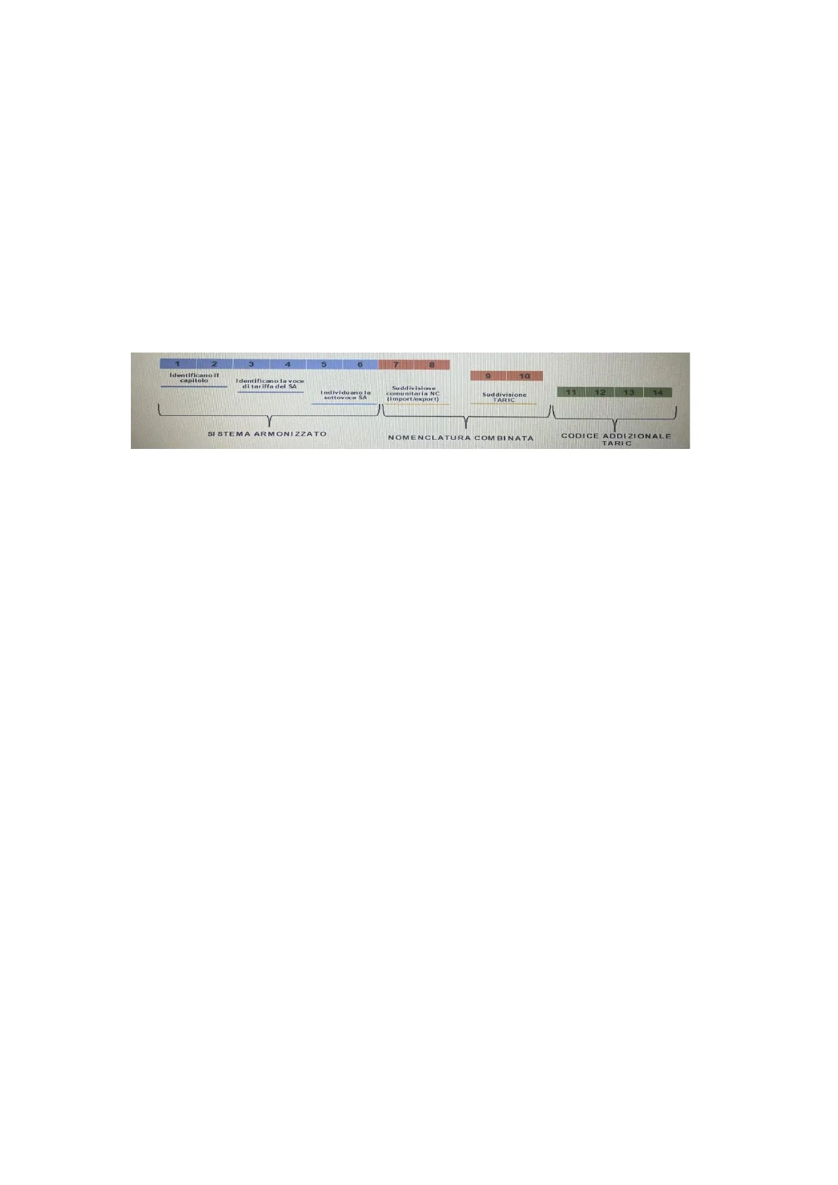 1 2 3 4 5 6 7 8 10 Identificano il capitolo Identificano la voce di tar iffa del SA 12 13 14 Individuano la sottovoce SA Suddivisione comunitaria NC (import/export) Suddivisione TARIC SI STEMA ARMONIZZATO NOMENCLATURA COMBINATA CODICE ADDIZIONALE TARIC