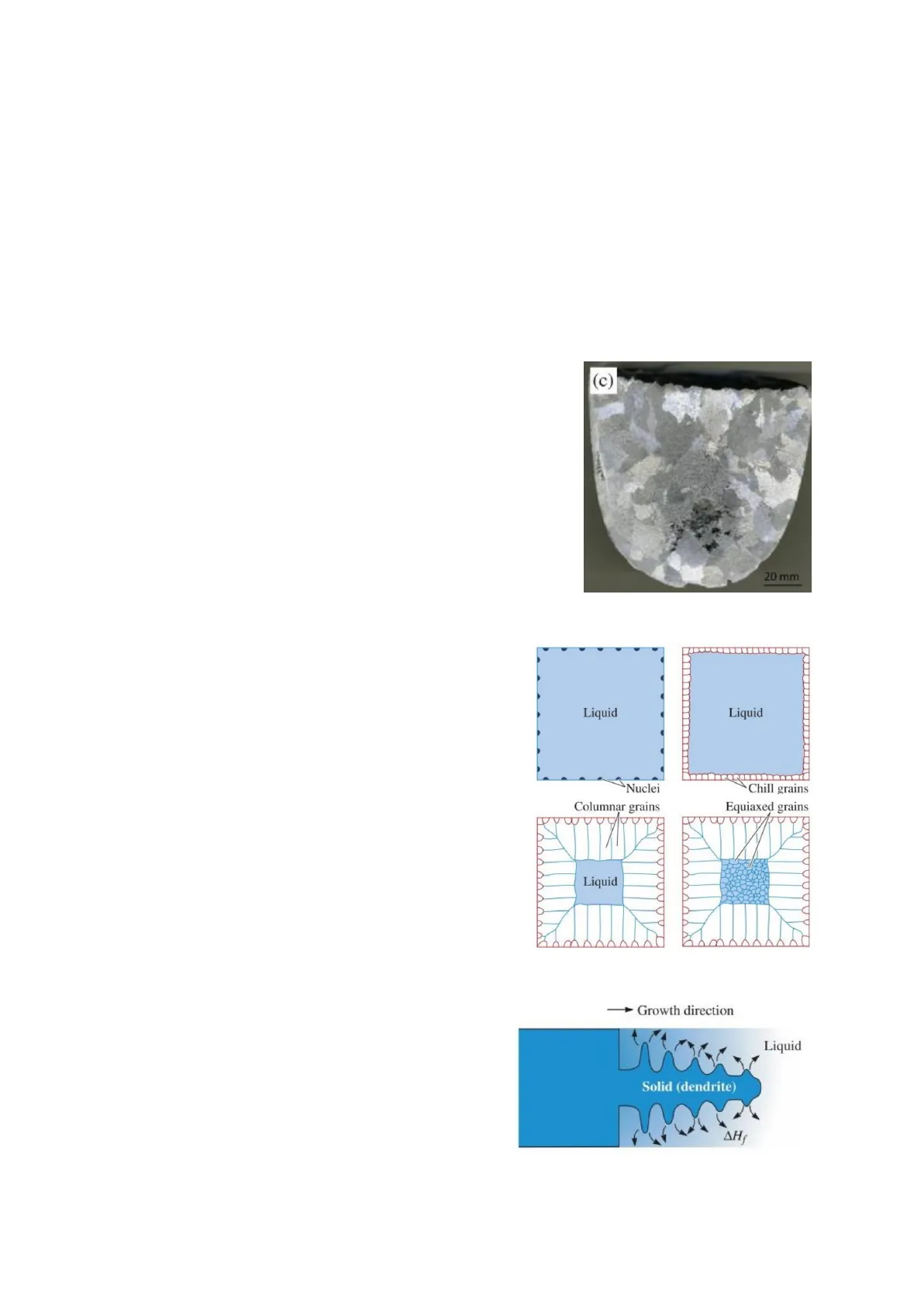 (c) 20 mm Liquid Liquid Nuclei Chill grains Columnar grains Equiaxed grains YWy Vw UV Liquid - + Growth direction Liquid Solid (dendrite) ΔΗf