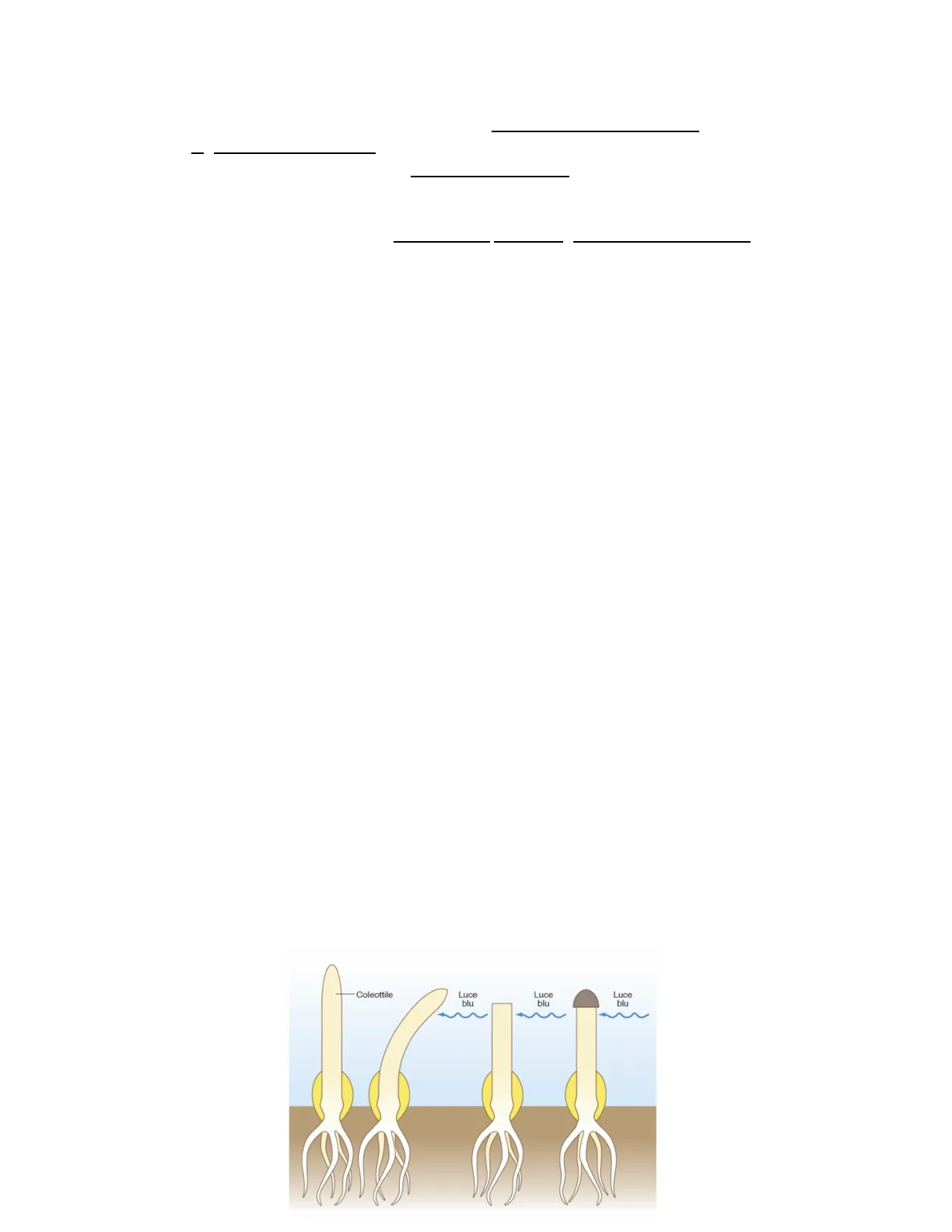 Esperimento del 1913-> scoperta della natura del messaggero: Vennero posti dei blocchi solidi di natura lipidica e altri blocchi di natura gelatinosa-acquosa, tra la parte apicale e basale Funzione dell'esperimento : il messaggero prodotto a livello apicale poteva a seconda del passaggio attraverso il blocco solido o gelatinoso permetteva di capire la natura chimica del messaggero