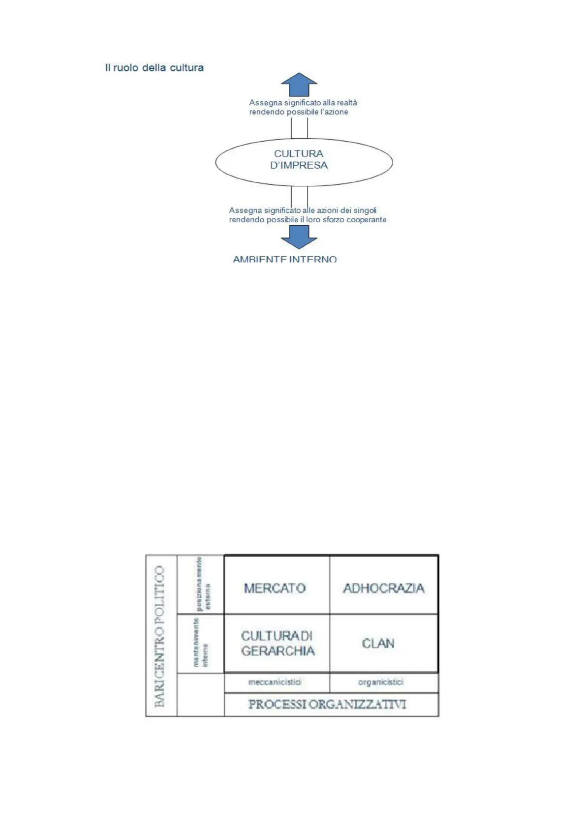 N.B. Non esiste nella realtà tipi culturali puri > un'impresa sarà classificabile in un quadrante piuttosto che in un altro per i suoi tratti dominanti (Es. Un'impresa che opera in business diversi presenterà caratteri appartenenti a tipi elementari diversi, ma sarà tuttavia classificabile, in linea di massima, in uno di essi, sulla base di quegli attributi che risultano preminenti).