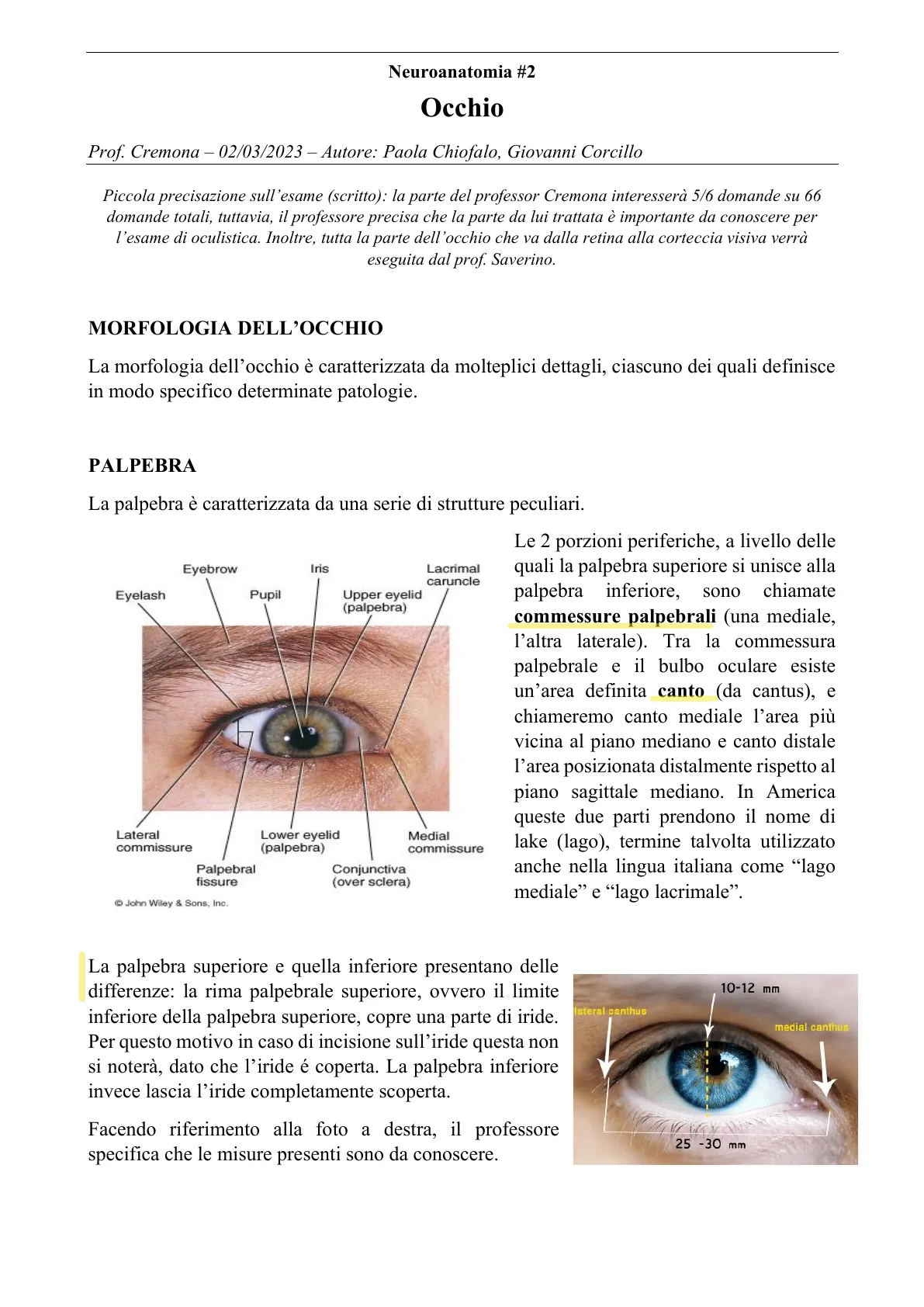 La morfologia dell'occhio è caratterizzata da molteplici dettagli, ciascuno dei quali definisce in modo specifico determinate patologie.
