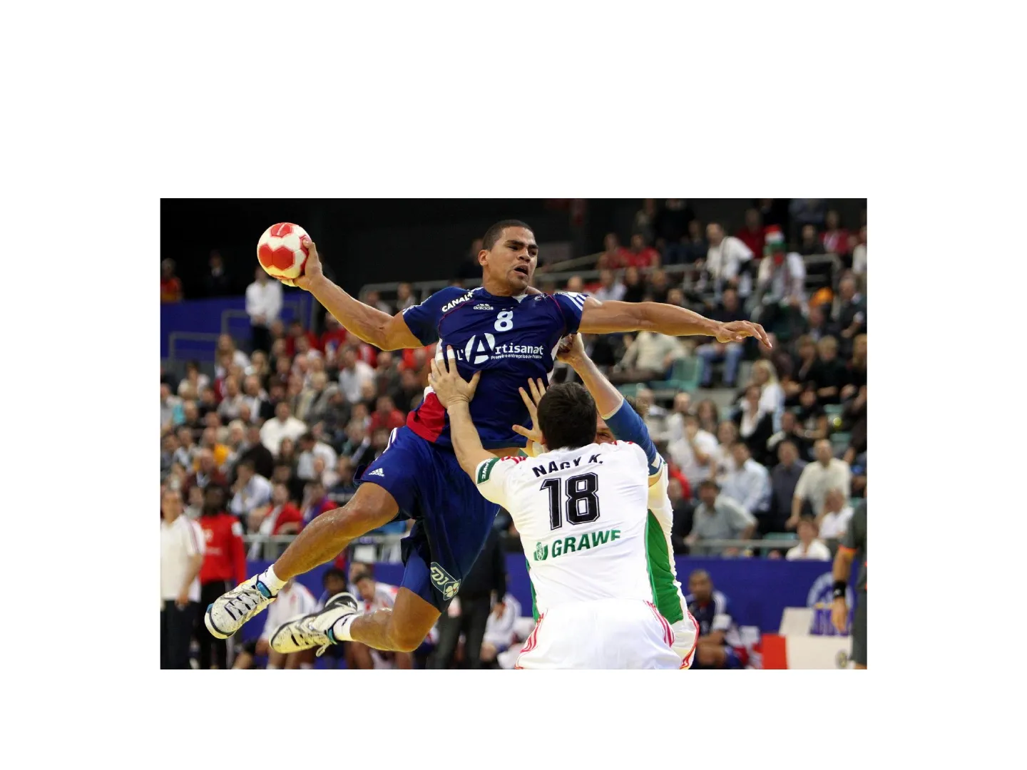 I falli che avvengono nello spazio tra la linea dei sei metri e quella dei nove metri vengono effettuati sulla linea dei nove metri in corrispondenza del punto dove è avvenuto il fallo. . Il portiere durante l'azione d'attacco può essere sostituito da un giocatore di campo ed in questo caso la squadra giocherà in sette senza il portiere.(over-player) Dopo la rete il gioco ricomincia da centrocampo. L'arbitro fischia l'inizio del gioco anche se uno o più giocatori della squadra che ha segnato la rete sono ancora nella metà campo avversaria.