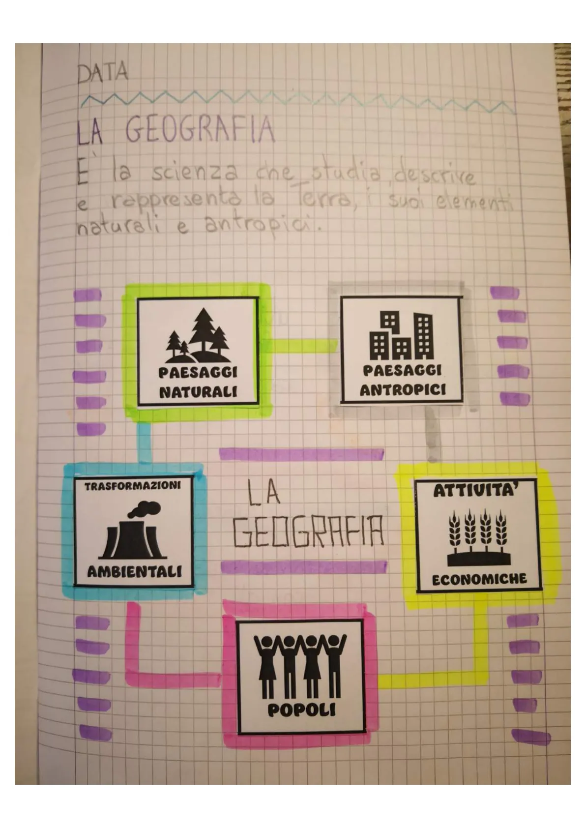 Schemi su Quaderno di Geografia 4. I Riassunti di Geografia per la scuola primaria, realizzati nel 2024, esplorano concetti fondamentali come la geografia, i paesaggi naturali e antropici, e le diverse tipologie di carte geografiche, utilizzando schemi visivi e tabelle per facilitare la comprensione.