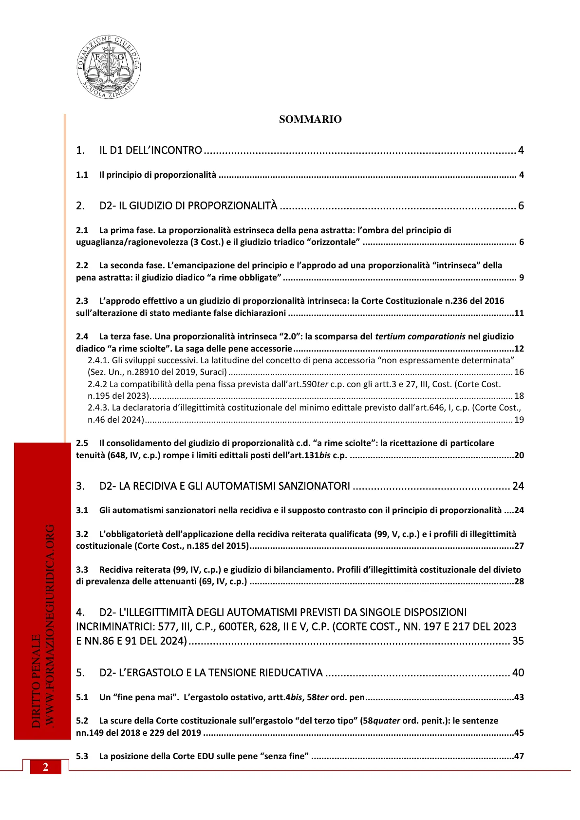 Documento della Scuola Zincani sul Corso Magistratura 2024, focalizzato sul principio di proporzionalità nel diritto penale. Il Pdf, adatto a concorsi pubblici in Diritto, esamina il giudizio di proporzionalità, gli automatismi sanzionatori e l'ergastolo, includendo le posizioni della Corte Costituzionale e della Corte EDU.