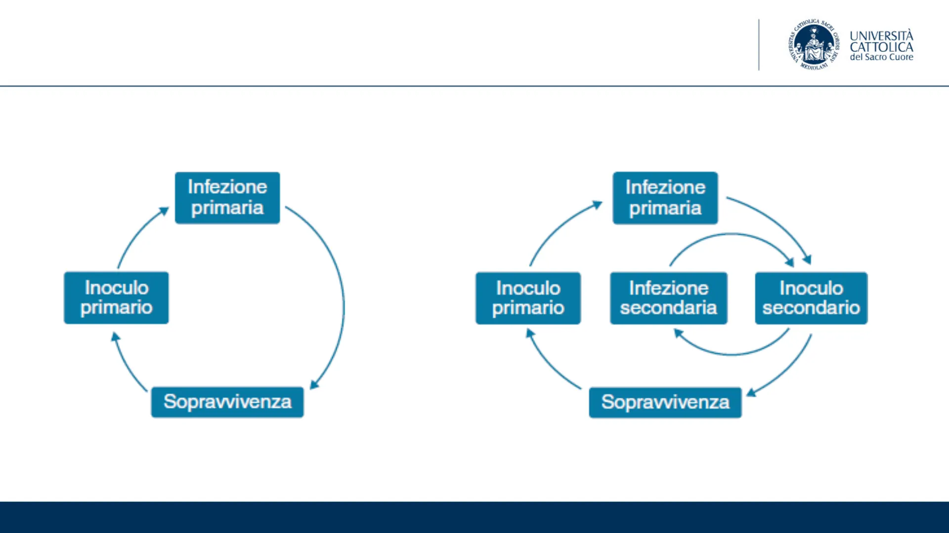 Infezione primaria Inoculo primario Sopravvivenza Infezione primaria Inoculo primario Infezione secondaria Inoculo secondario Sopravvivenza