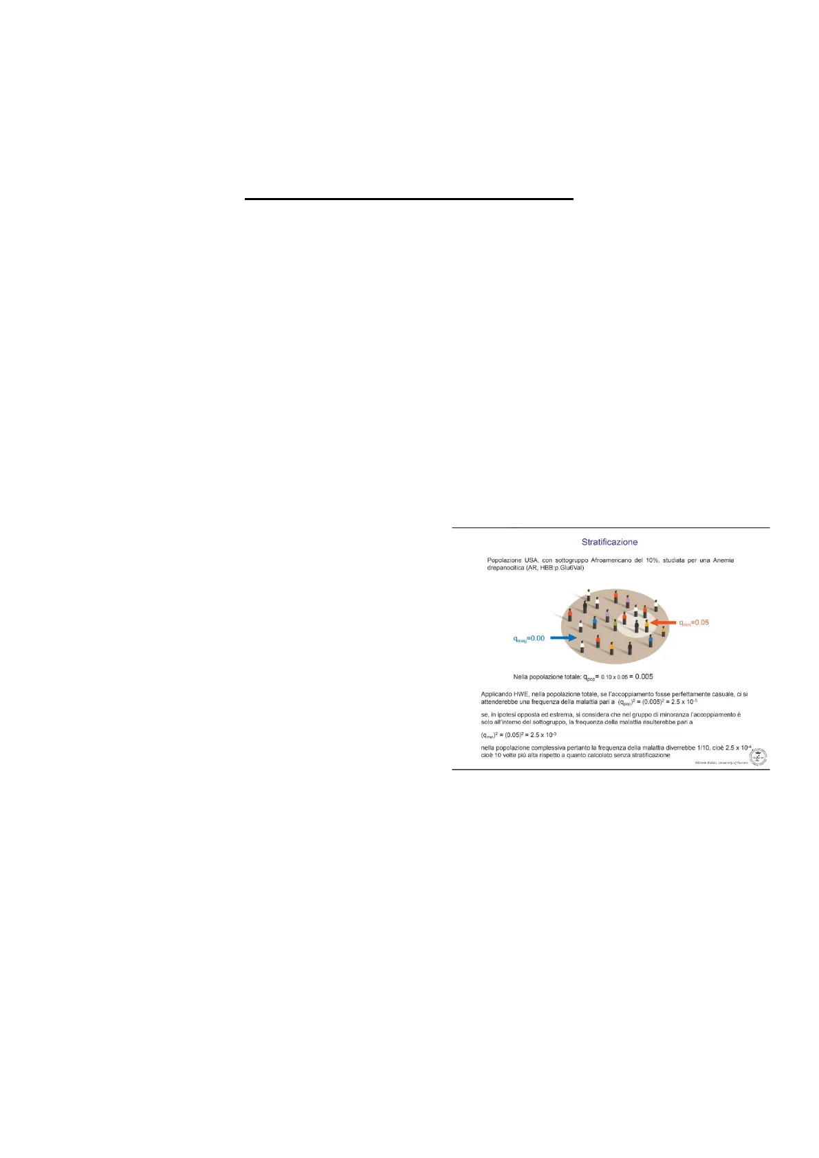 attenderebbe una frequenza della malattia pari a (qpop)2 = (0.005)2 = 2.5 x 10-5