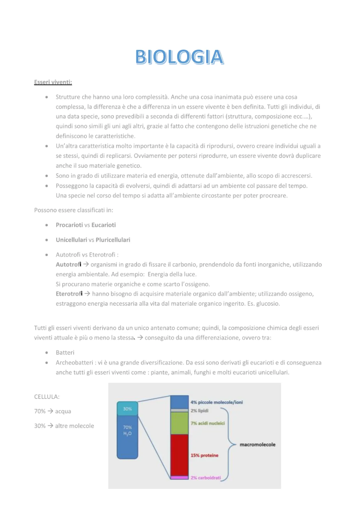 Tutti gli esseri viventi derivano da un unico antenato comune; quindi, la composizione chimica degli esseri viventi attuale è più o meno la stessa. > conseguito da una differenziazione, ovvero tra: