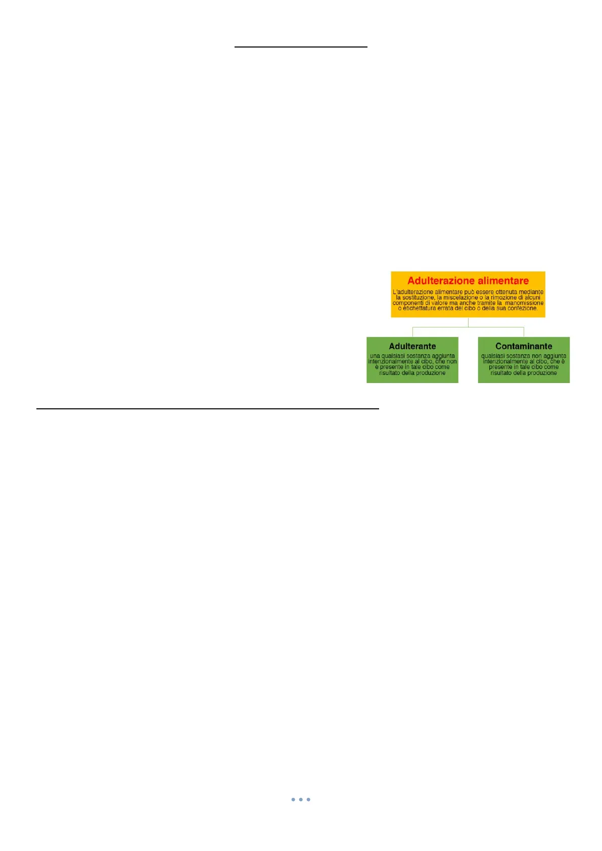 Con "frode" o "adulterazione alimentare" si intende un qualsiasi processo illegale legato ad una riduzione della qualità e/o della salubrità del cibo. L'adulterazione può essere ottenuta mediante la sostituzione, la miscelazio- ne o la rimozione di alcuni componenti o tramite la manomissione o etichet- tatura errata del cibo o della sua confezione.